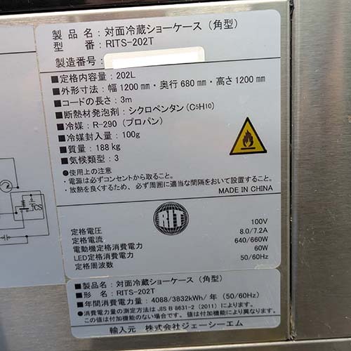 【業界最長1年保証】ケーキショーケース JCM RITS-202T 業務用 中古/送料別途見積