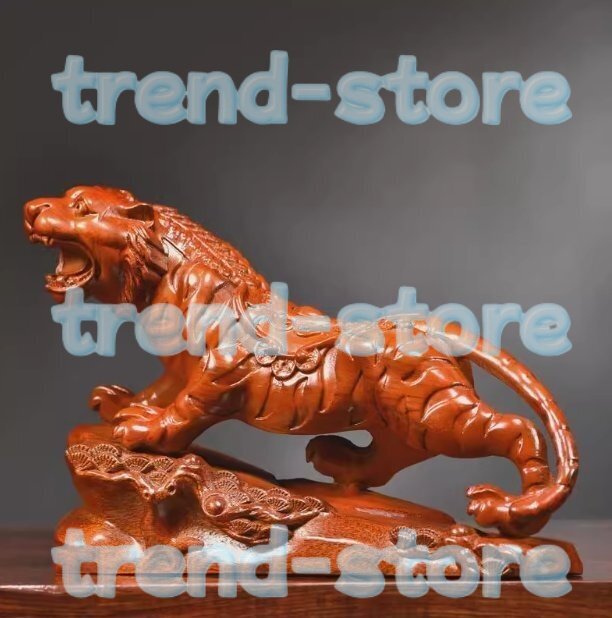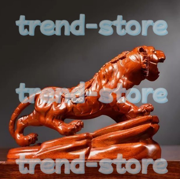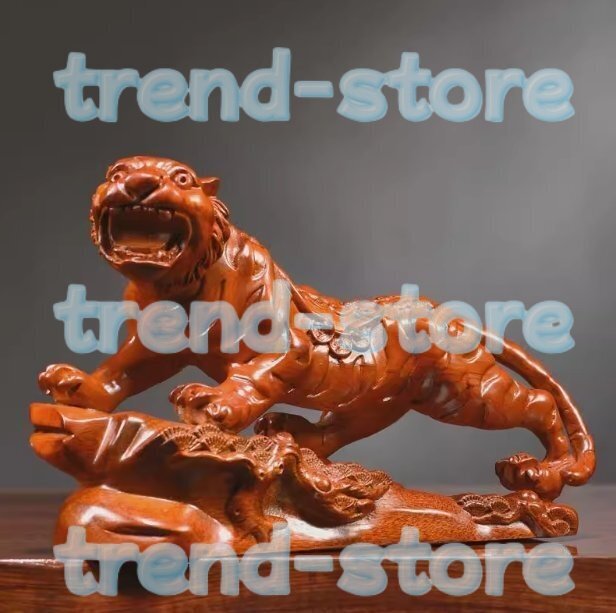 虎 置物 木彫り 干支 木彫 彫刻工芸品 2点セット