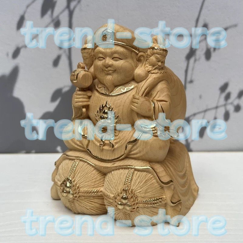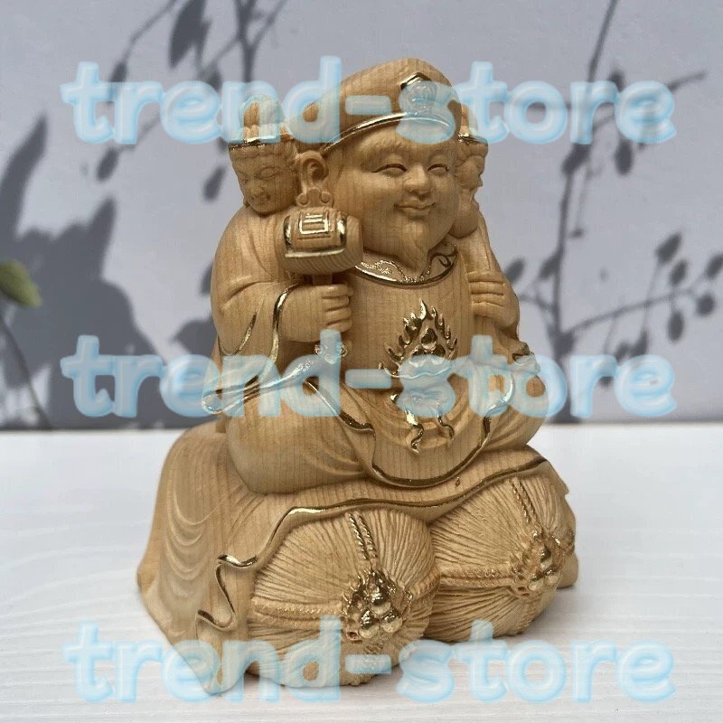 最新作 檜材 切り金 七福神 三面大黒天 大黒天 台付き 木彫仏像 仏教美術 精密細工 仏師で仕上げ品 高さ12cm