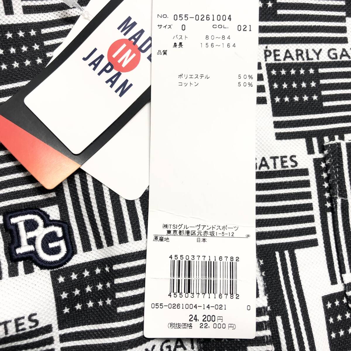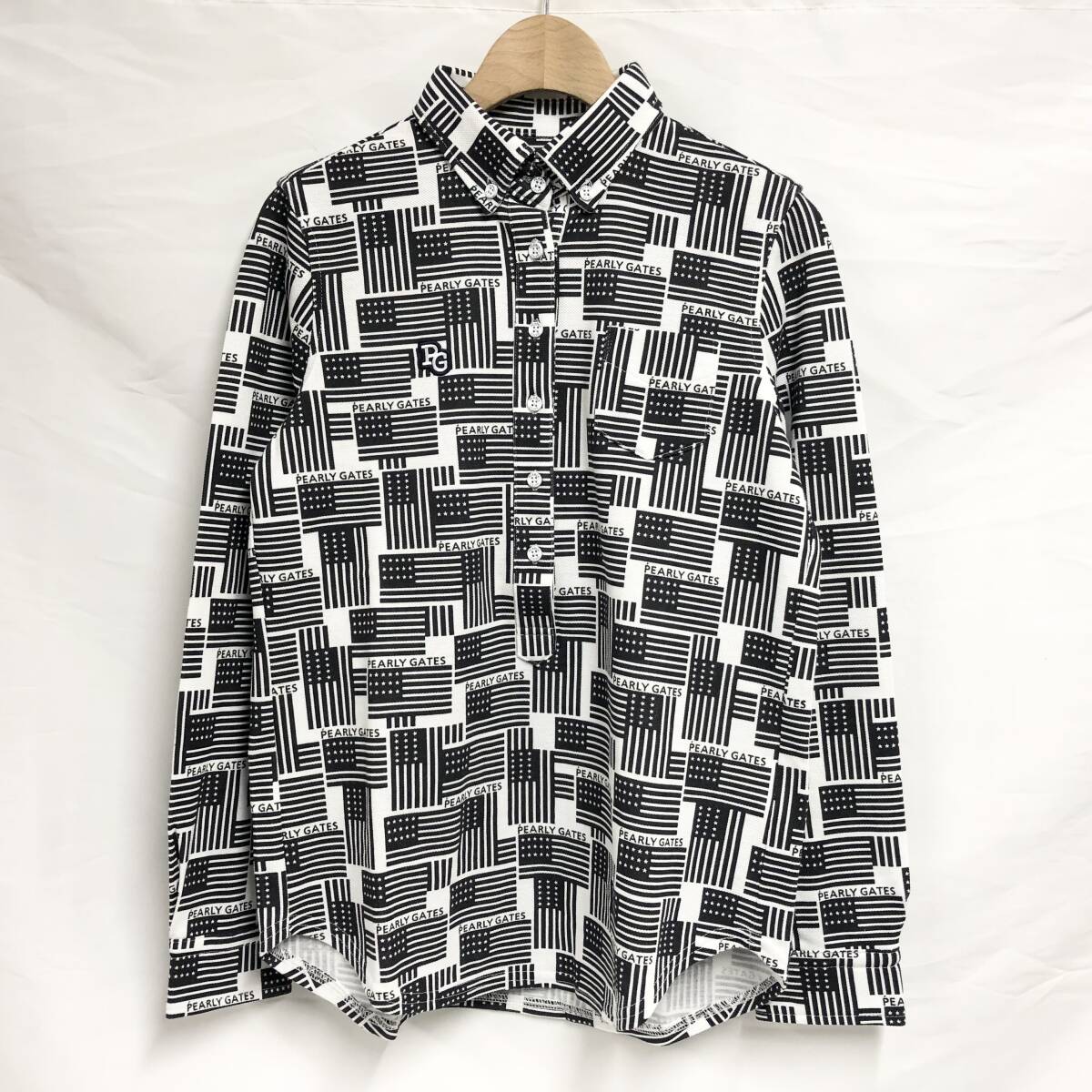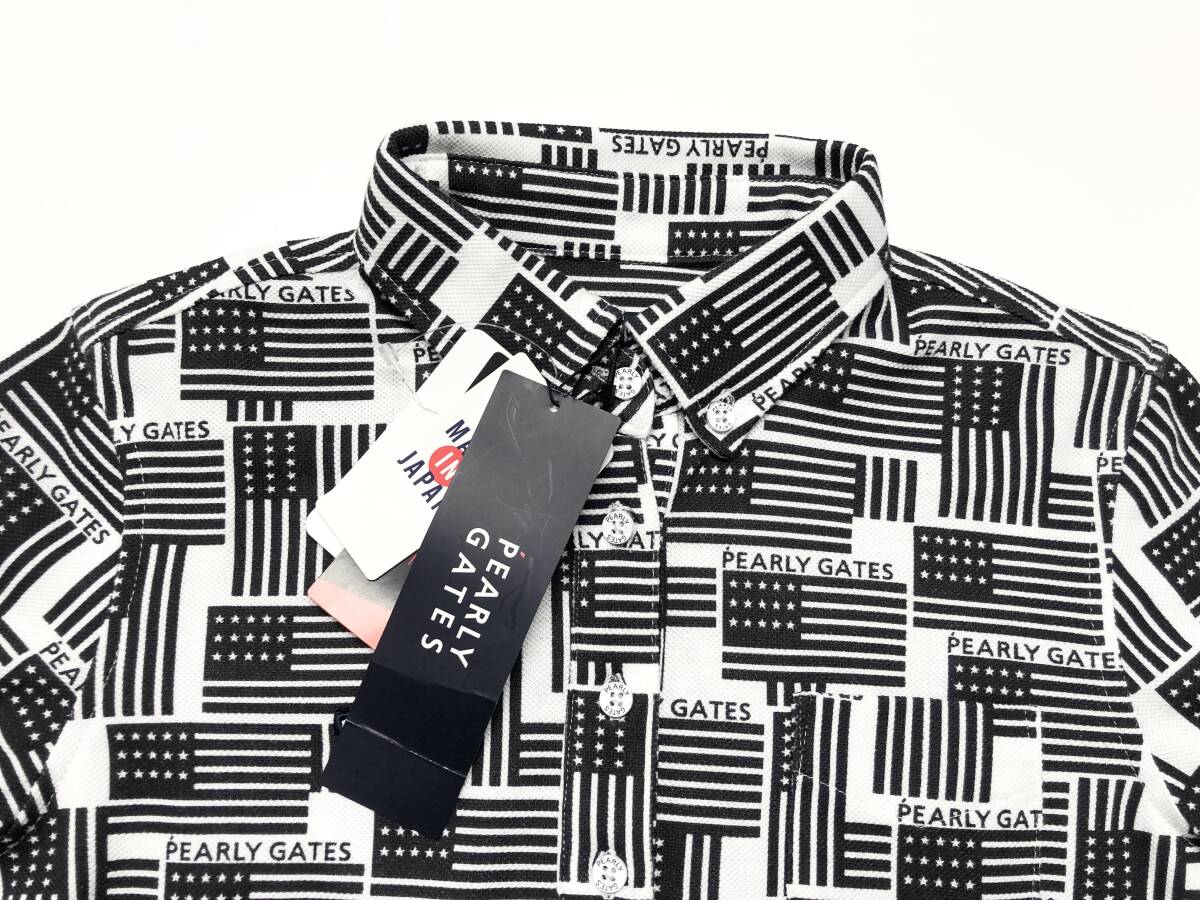○★新品未使用 PEARLY GATES(パーリーゲイツ) 星条旗柄 長袖ポロシャツ 0 ホワイト★○