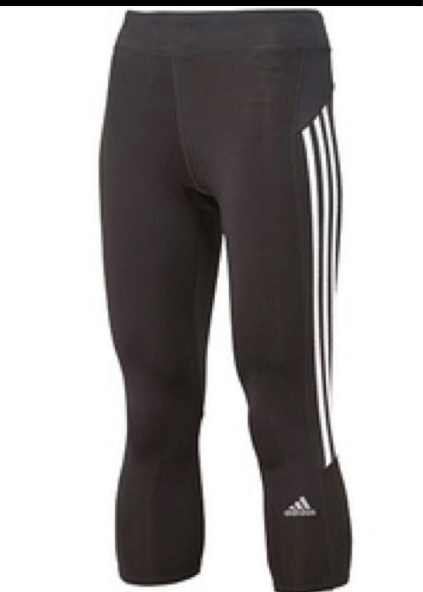 ◆アディダス◆adidas◆AG932 ◆RSP ランニング 3/4丈◆タイツ◆レディース ◆ブラック/ホワイト◆3ストライプ◆