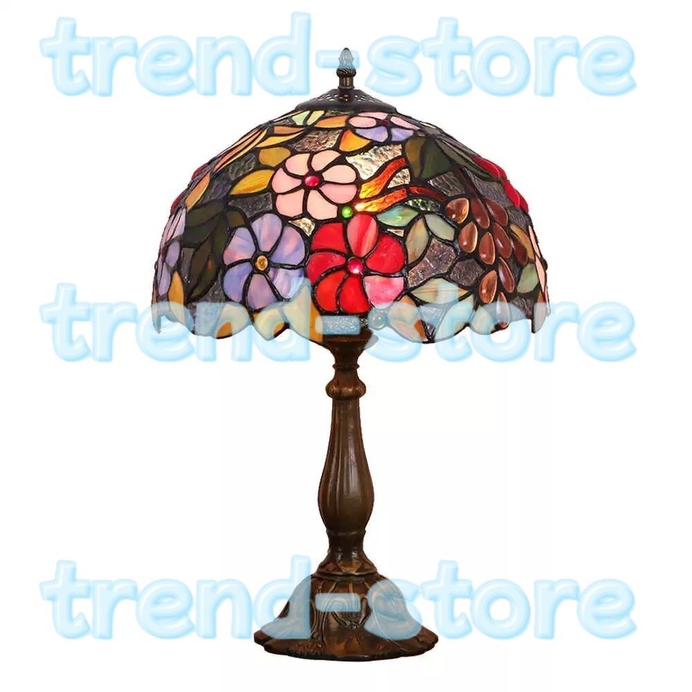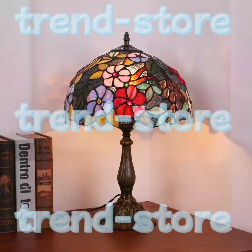ステンドランプ ステンドグラス グレープ 花柄 照明 レトロな雰囲気 ティファニー技法 デスクライト室内装飾