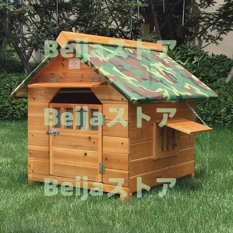 豪華別荘 中型/大型犬用 ペットハウス 犬小屋ハウス おうち 屋外庭用 防水 ドア 窓 ベランダ 日よけ 表札 屋上ズックカバー付属