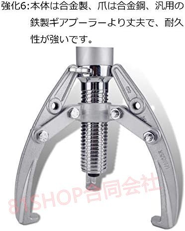 「81SHOP」油圧式 ギアプーラー 最大荷重約20t 約20000kg 2本爪/3本爪変更可能プーリ抜き ギア外し (引き抜き荷重:20t(約20000kg))