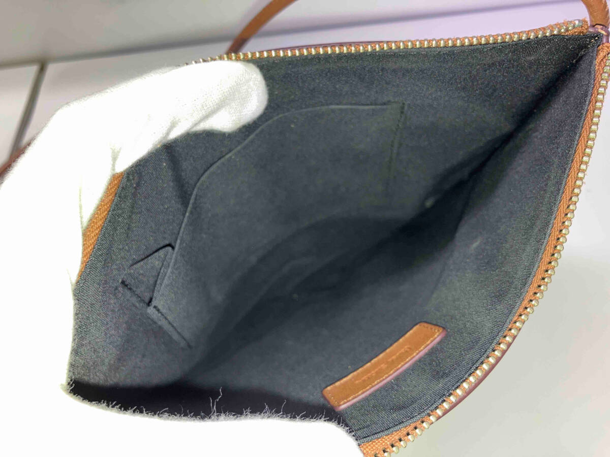 | こちらは中古品のご案内となります。 写真と実際の色味が多少異なる場合がございます。 表面に若干のシワがございます。 【実寸サイズ】 縦:約16.5cm 横:約22cm 奥行き:約0.5cm ショルダー:約120cm |
