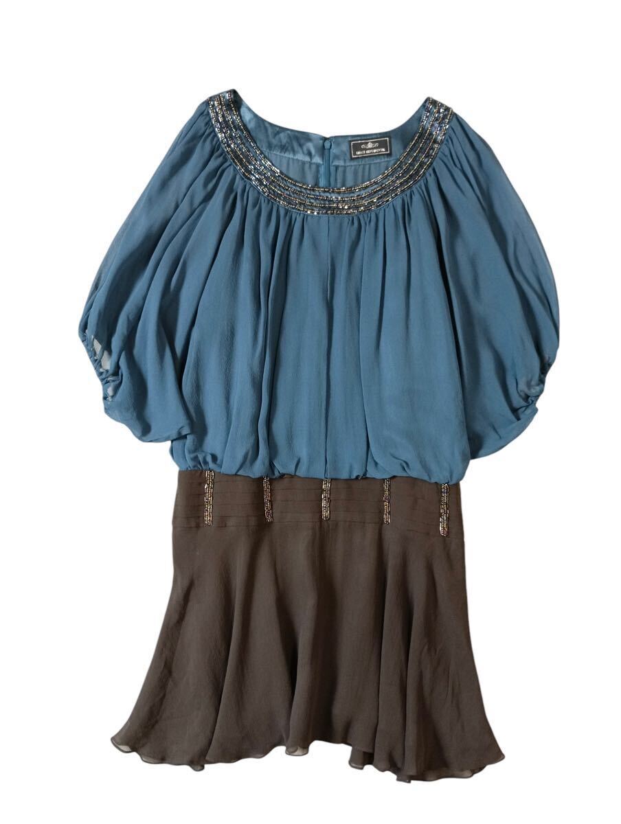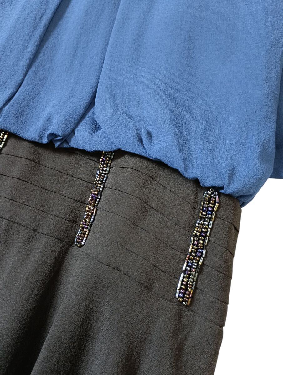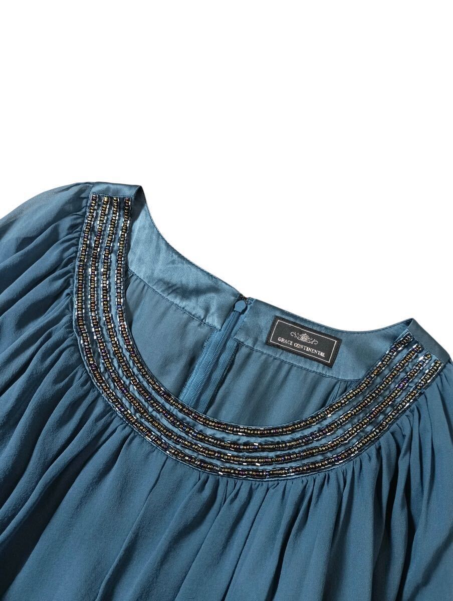 (D) GRACE CONTINENTAL グレースコンチネンタル ビーズ 装飾 シルク ワンピース 36 (ma)