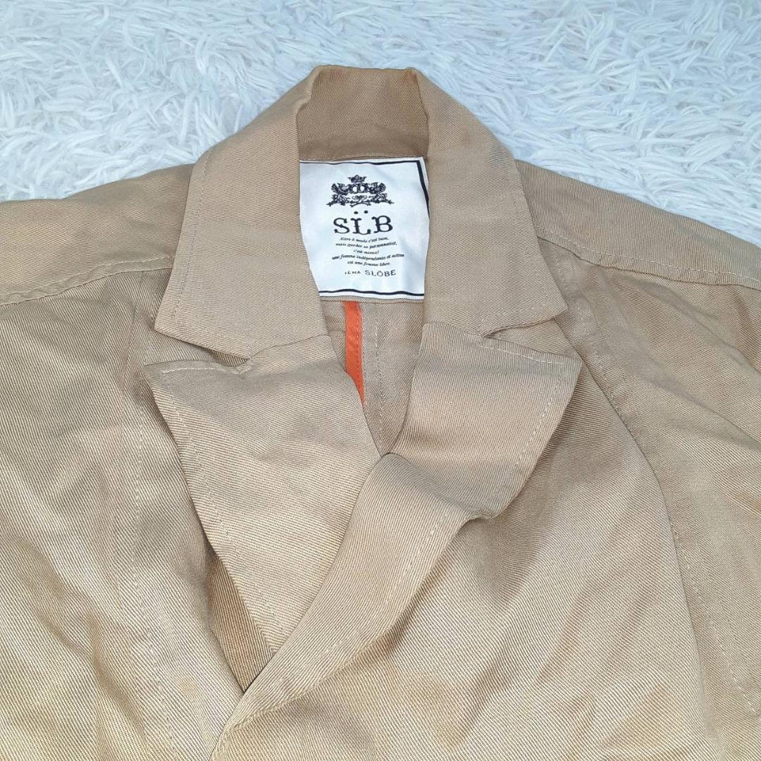 美品◎SLOBE IENA スローブイエナ ジャケットコート ベージュ 白茶 38(Mサイズ) パイピング ベルト付き