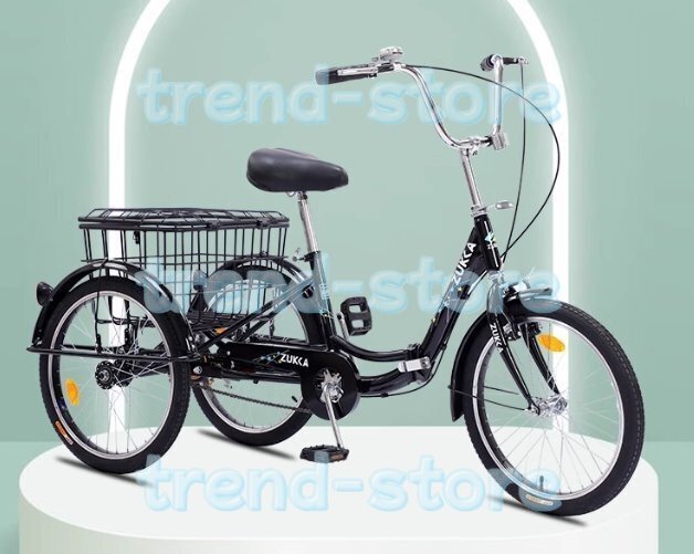 26インチ 三輪自転車 6段変速 ショッピングバスケット付き 大人用三輪車 レクリエーション、ショッピング、ピクニック