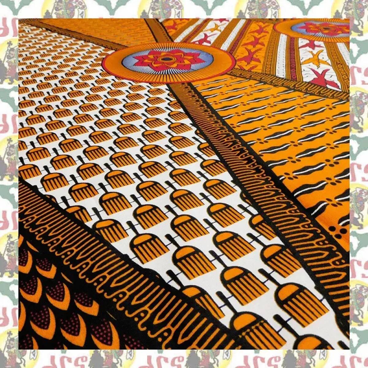 【SALE/180cm x 110cm/2ヤード】アフリカンプリント生地 barg-q14 アフリカ布 アフリカ生地 ゴールドプリント アンカラ キテンゲ
