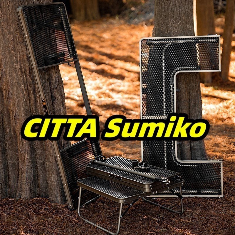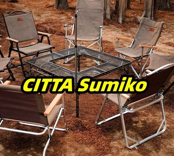 ②チェアに座りながら、たき火やBBQが楽しめるテーブル。 放熱性に優れた丈夫なスチールメッシュ天板を採用し、中央にたき火台やグリルを設置することで、チェアに座りながらたき火やBBQを楽しめる。