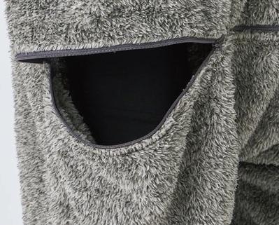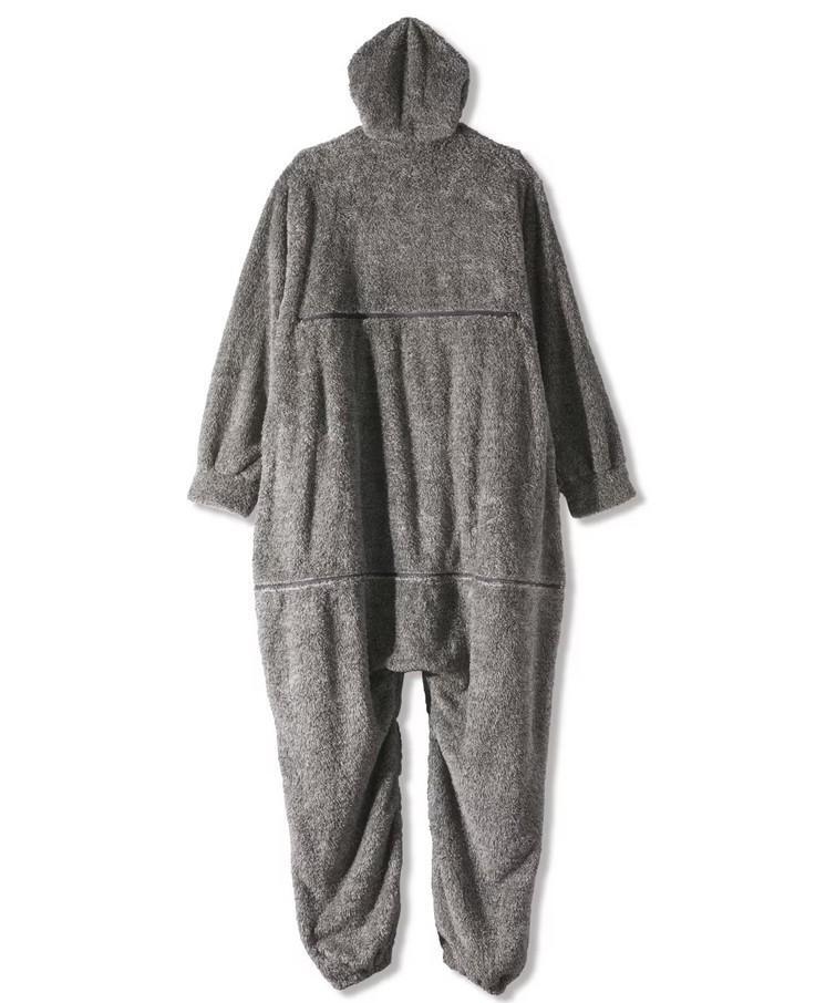 ふわふわのボアフリース素材は軽くて暖か、そのまま動ける足付デザイン。
