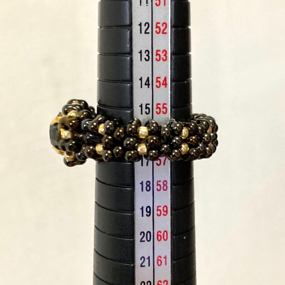 15-17号 ビーズ リング 指輪 ハンドメイド ラインストーンとファルファーレビーズのリング グレー×カーキブロンズ です。
