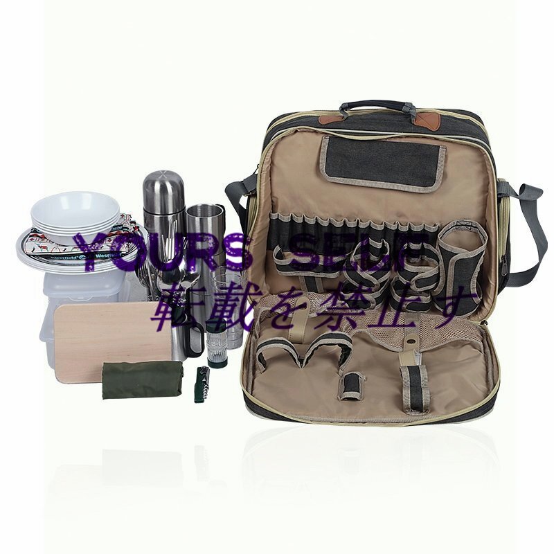 37セット キャンプ 多人食器セット ピクニック 便利 一式食器バッグ 携帯用多機能 保温バッグ