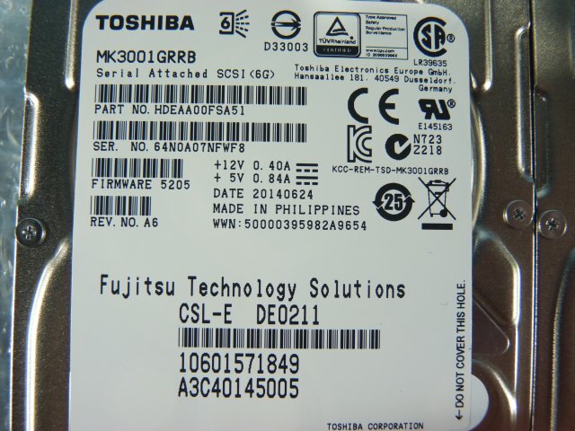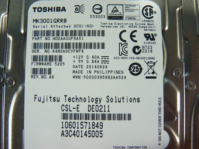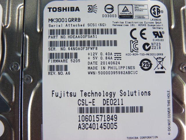3個セット 富士通 A3C40145005 300GB 2.5インチ SAS HDD 6Gb 15K(15000)rpm 15mm / MK3001GRRB