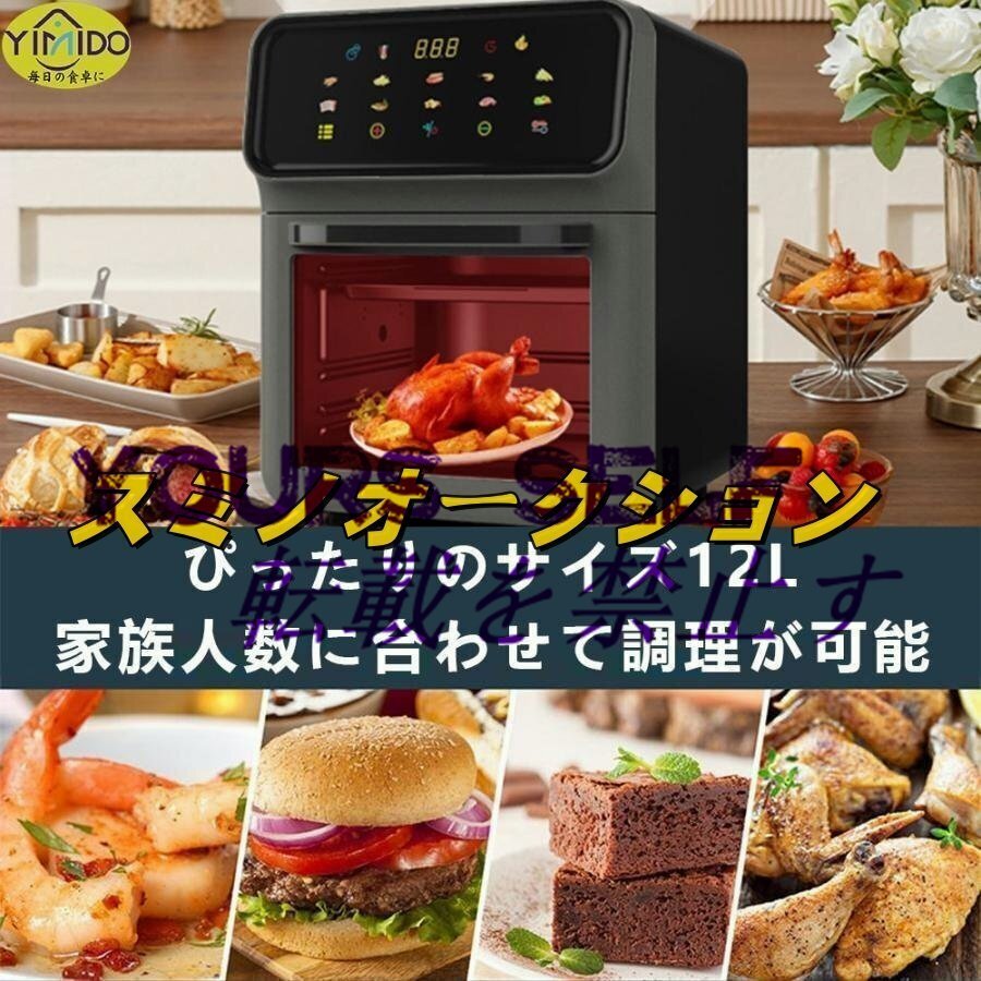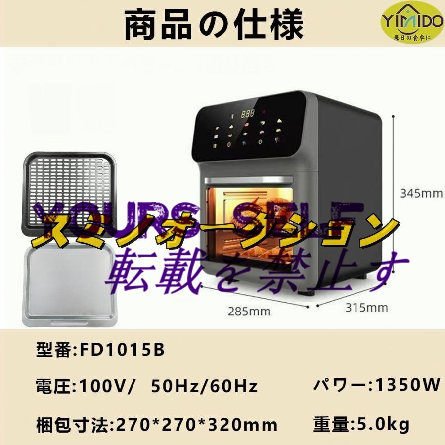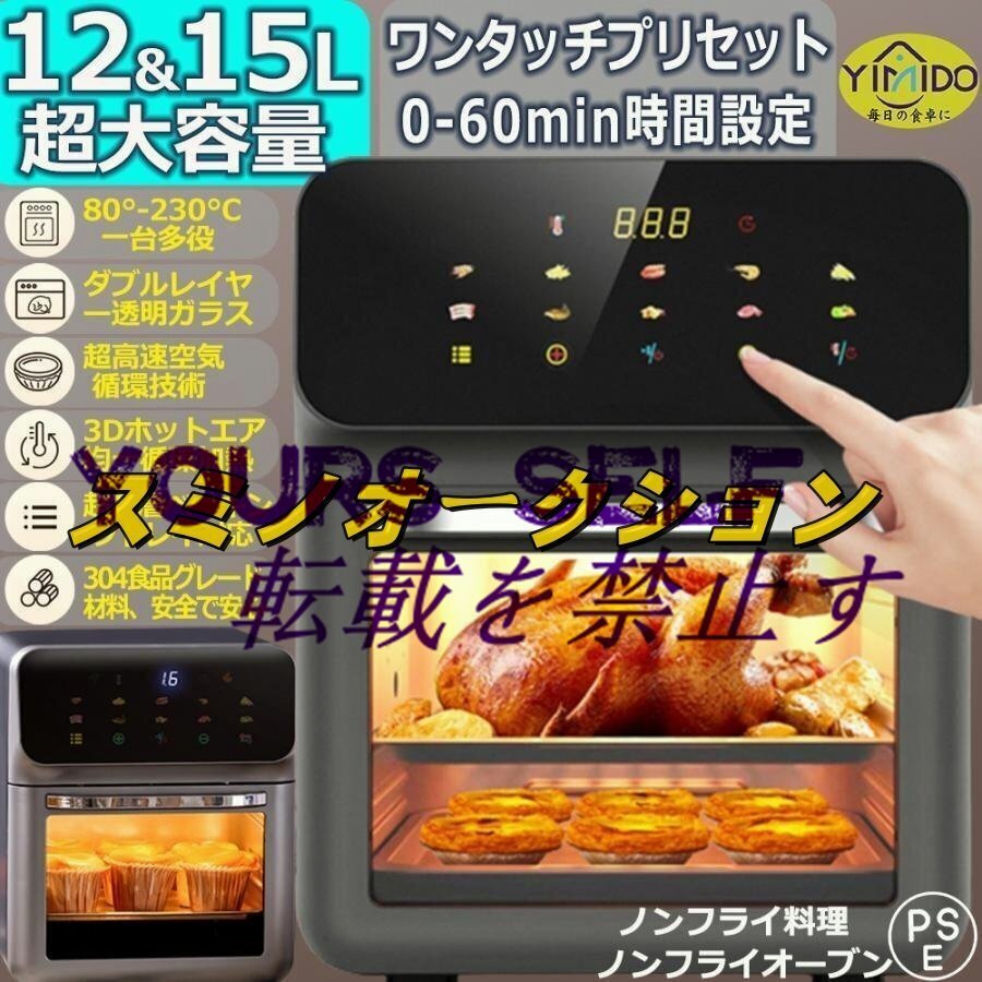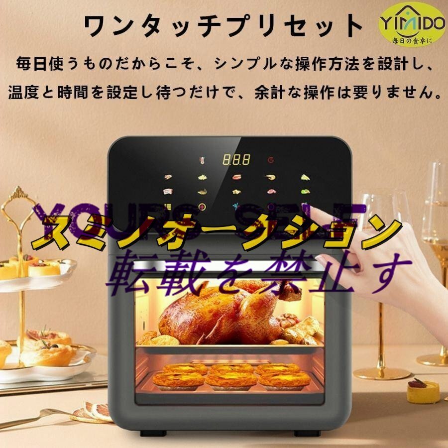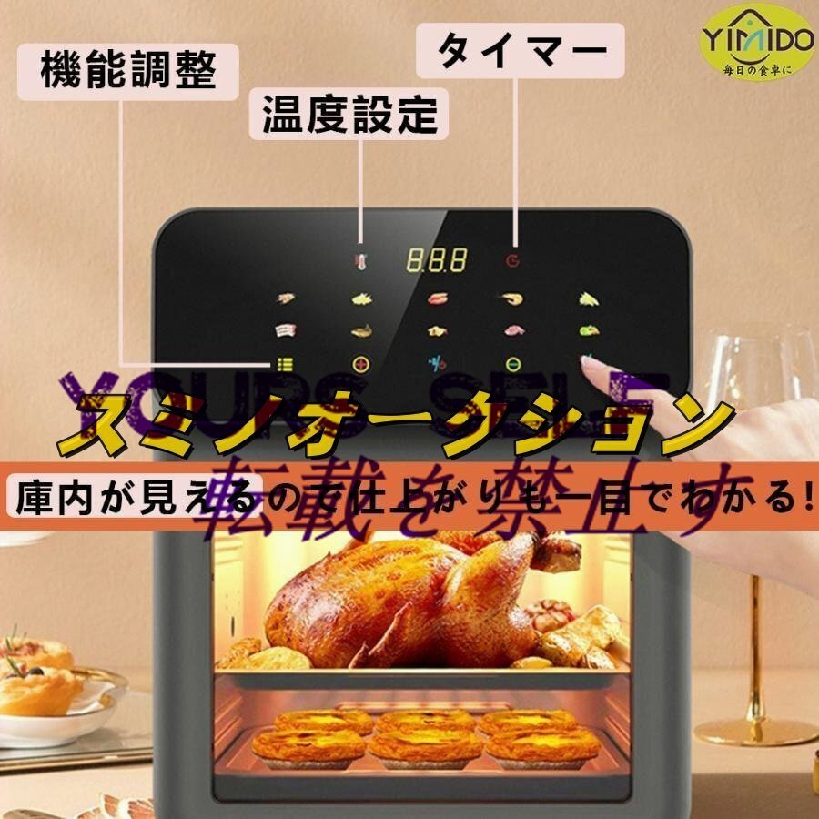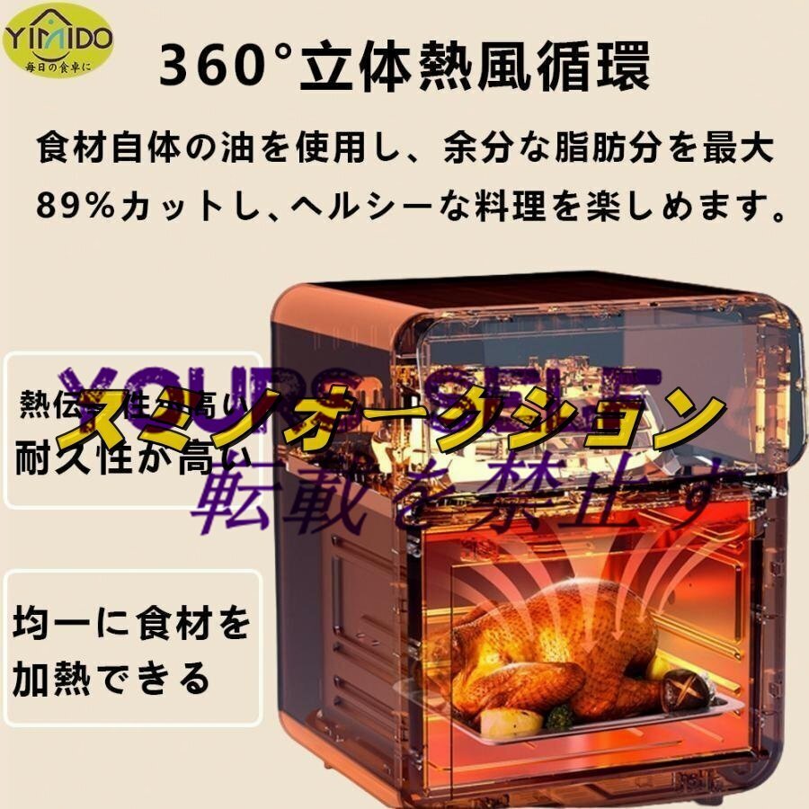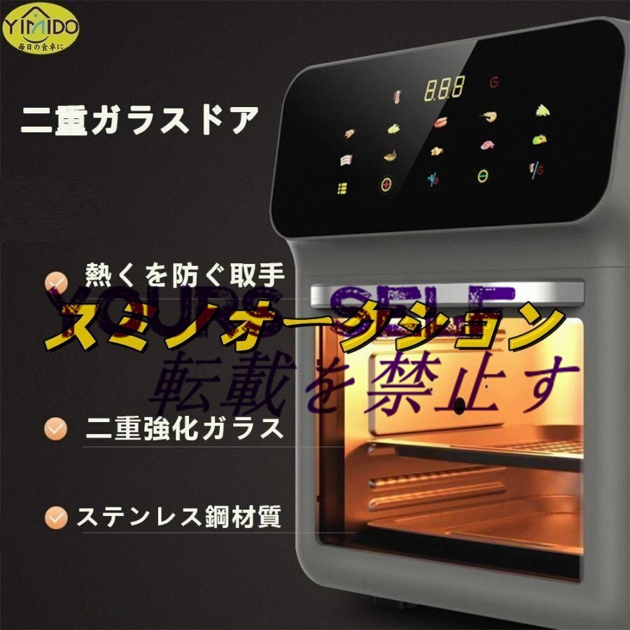 ノンフライヤー 透明窓 エアーオーブン ノンフライオーブン 15L 大容量 電気フライヤー 一台多役 360°空気循環技術 220℃熱風 油なし