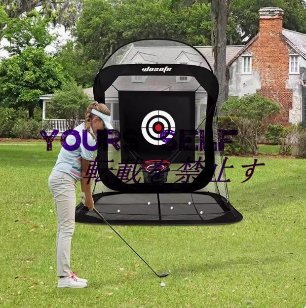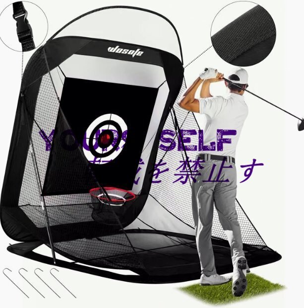 ゴルフネット 自宅でドライバーやアプローチ練習 初心者でも設置簡単 練習器具 自動返球 野外室内 単体(200cm)+3IN1ラフ芝マット ブラック