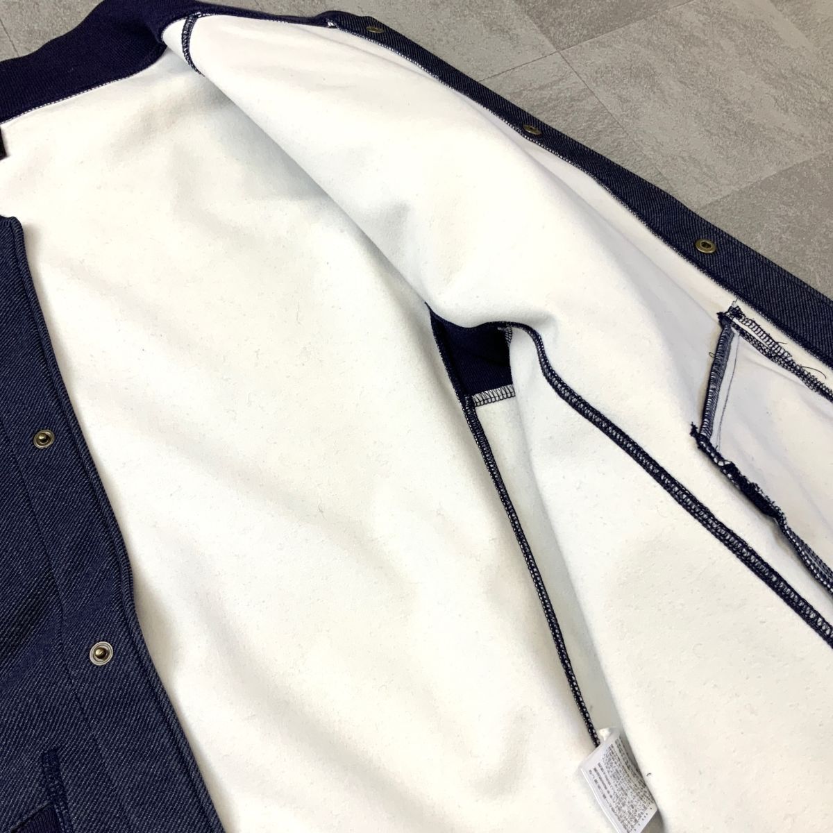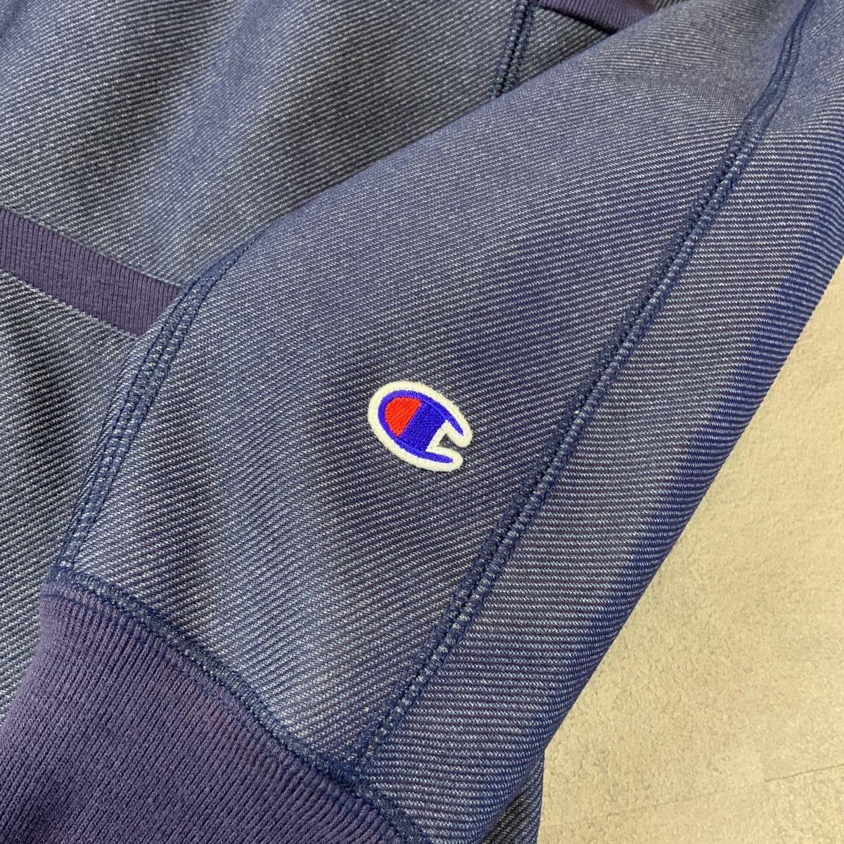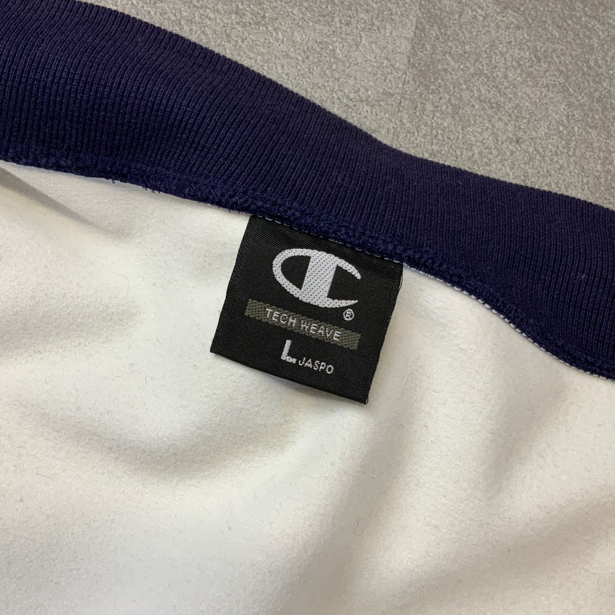 美品 champion チャンピオン MA1 スナップボタン ノーカラー デニム調 ジャケット メンズ Lサイズ ネイビー