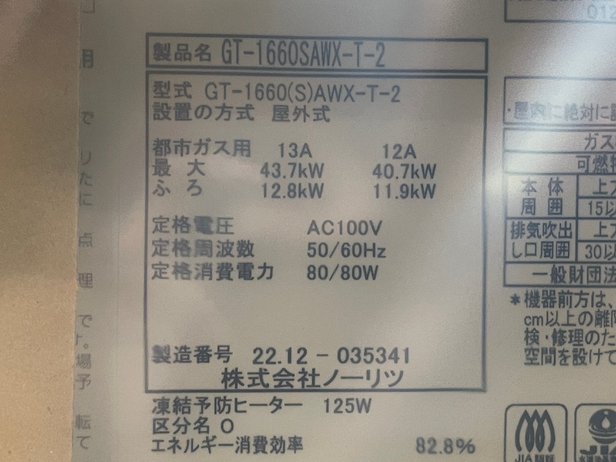 高年式 2022年製 未開封 未使用品 NORITZ GT-1660SAWX-T-2 ガス給湯器 前方排気 16号 都市ガス ふろ 追い炊き ノーリツ 【保証あり】