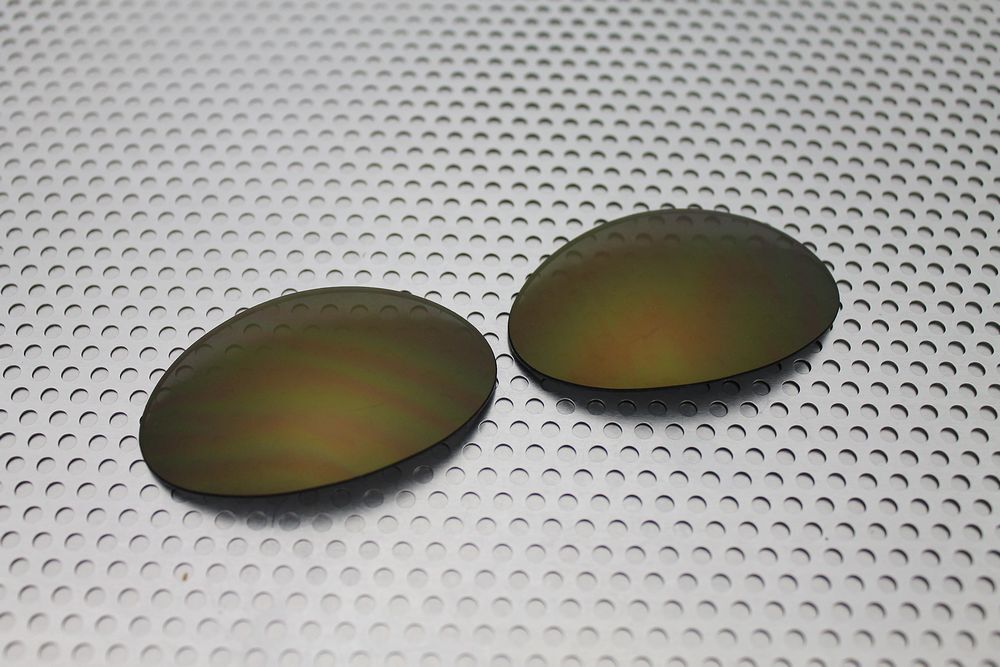 ベースレンズは自然に見える濃いめのグレー。OAKLEYのゴールドイリジウムと同じような色になりますが、ベースのレンズがグレーなので、少し濃い目な感じのミラーになります。24Kのような明るいゴールドでは無く、落ち着いた感じのシックなゴールドになります。すべての光をバランスよく抑え、まぶしさも軽減できるオールマイティな使いやすいカラーです。<レンズの詳細>・ミラー:ゴールド・ベースレンズ:グレー・透過率:17.14%・レンズカーブ:8・レンズの厚さ:1.7mm - 1.5mm・夜間の運転不可 /昼間の運転可※レンズ交換にはT6ドライバー(別売)が必要になります。※画像に写っているフレームは付属しません。 レンズ(1ペア)のみの出品になります。