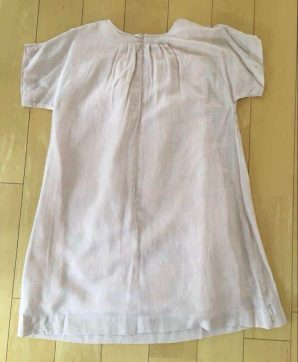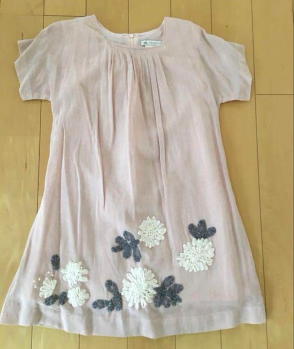 薄いピンクの花柄刺繍が施されたCHARABIAの半袖ワンピース。