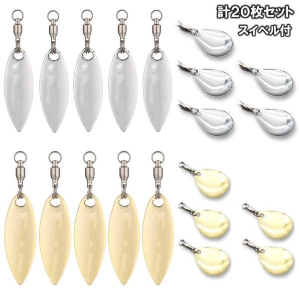 フィッシング ルアー メタルジグ ブレード 20個入 スイベル付 チューニング スピンテール スピナー 釣り スプーン 型 DIY 釣り用 ルアーキット