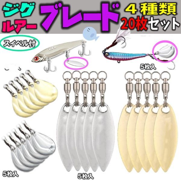 フィッシング ルアー メタルジグ ブレード 20個入 スイベル付 チューニング スピンテール 釣り スプーン 型 DIY 釣り用 ルアーキット