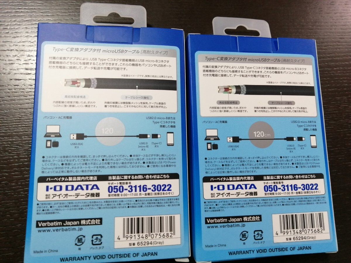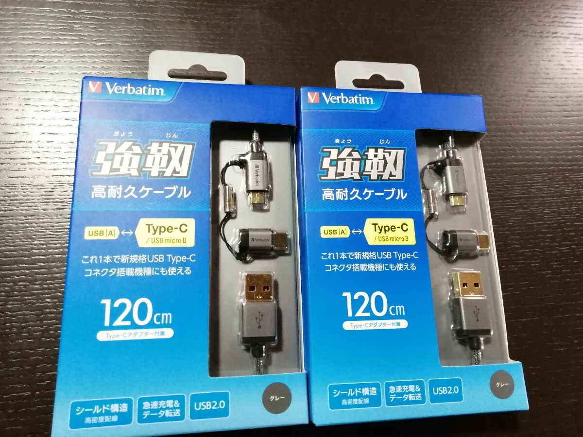 Verbatim 強靭高耐久ケーブル 120cm2個セット USB(A)⇔Type−C/USB micro B