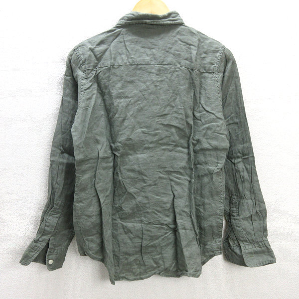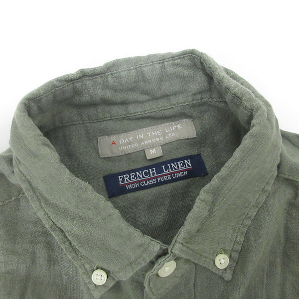 G■ユナイテッドアローズ/UNITED ARROWS ADAYINTHELIFE 長袖BDシャツ/リネン【M】緑系/men's/126【中古】■