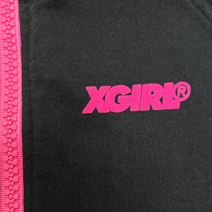 | 商品タイトル | X-girl スウェットブルゾン カットソージャケット 裏毛 ジップアップ ラグラン ハイネック 長袖 綿100% 1 ピンク 黒×ピンク レディース |