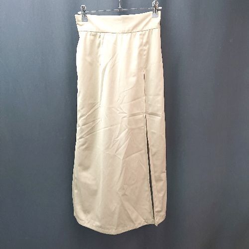 ◇ TINAJOJUN サイドジップ バックゴム カジュアル スリット風 ロング丈 フレア スカート サイズM ベージュ レディース E