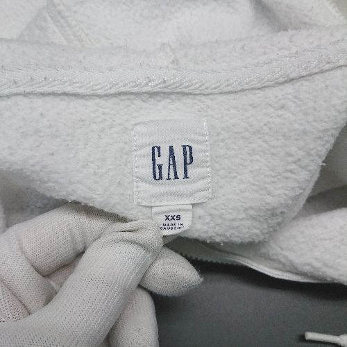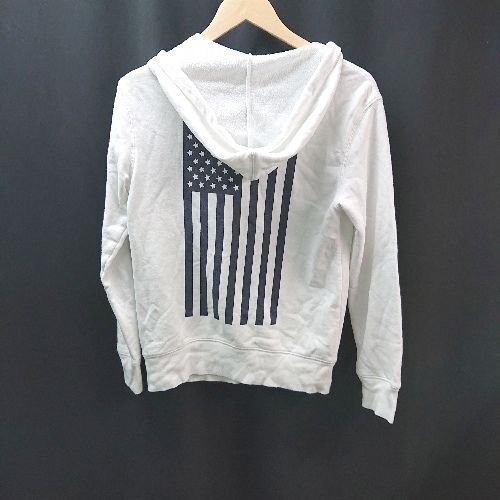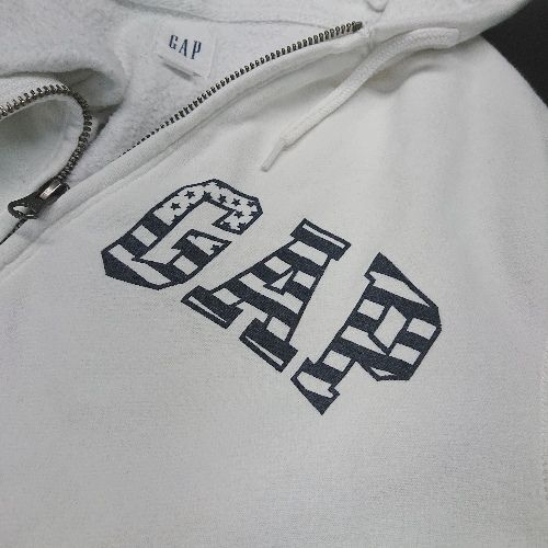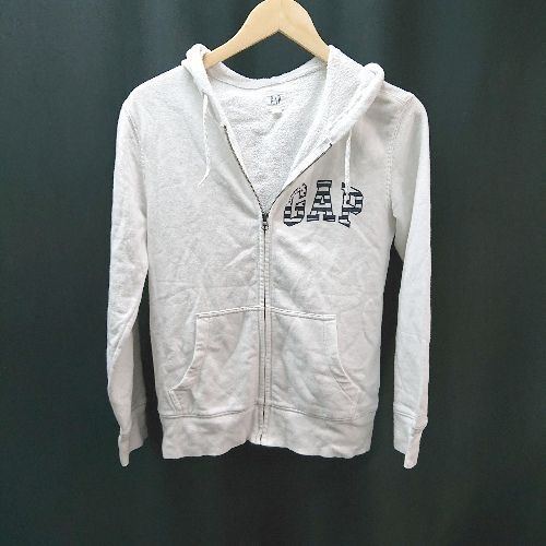 ◇ GAP ギャップ プリント ジップアップ フード 裏起毛 シンプル オシャレ 長袖 パーカー サイズXXS ホワイト系 メンズ E