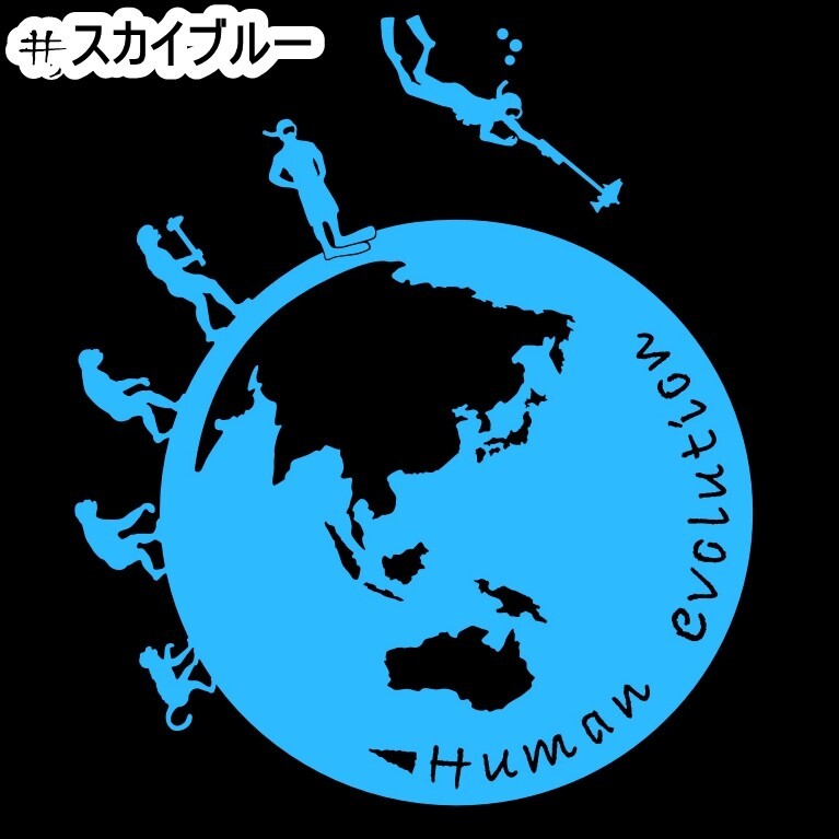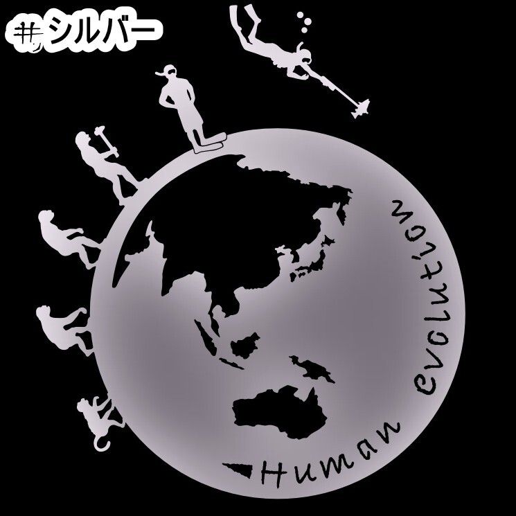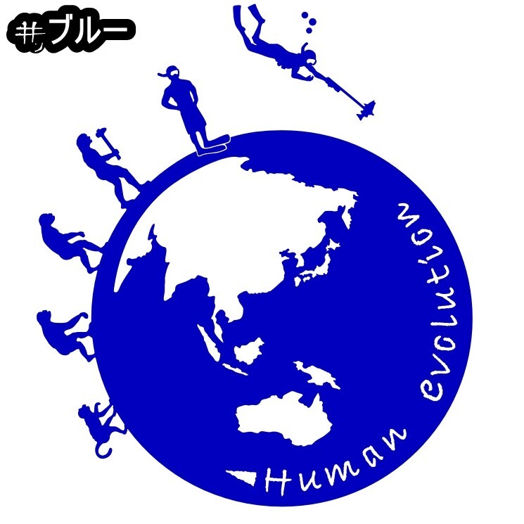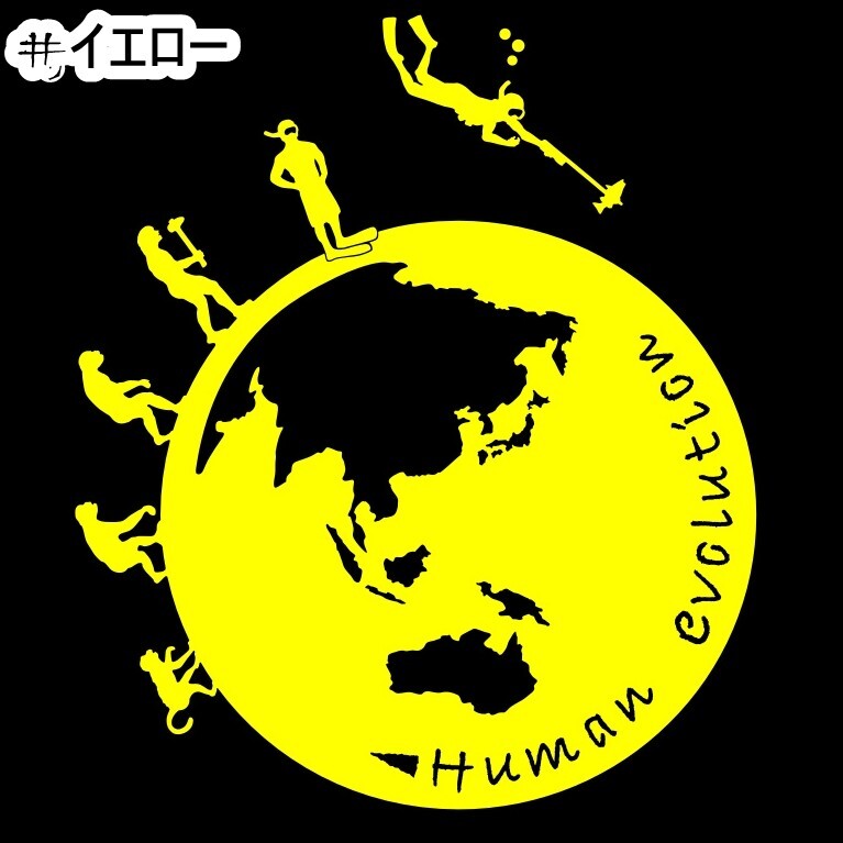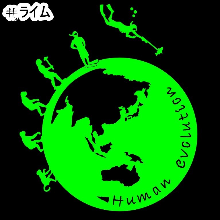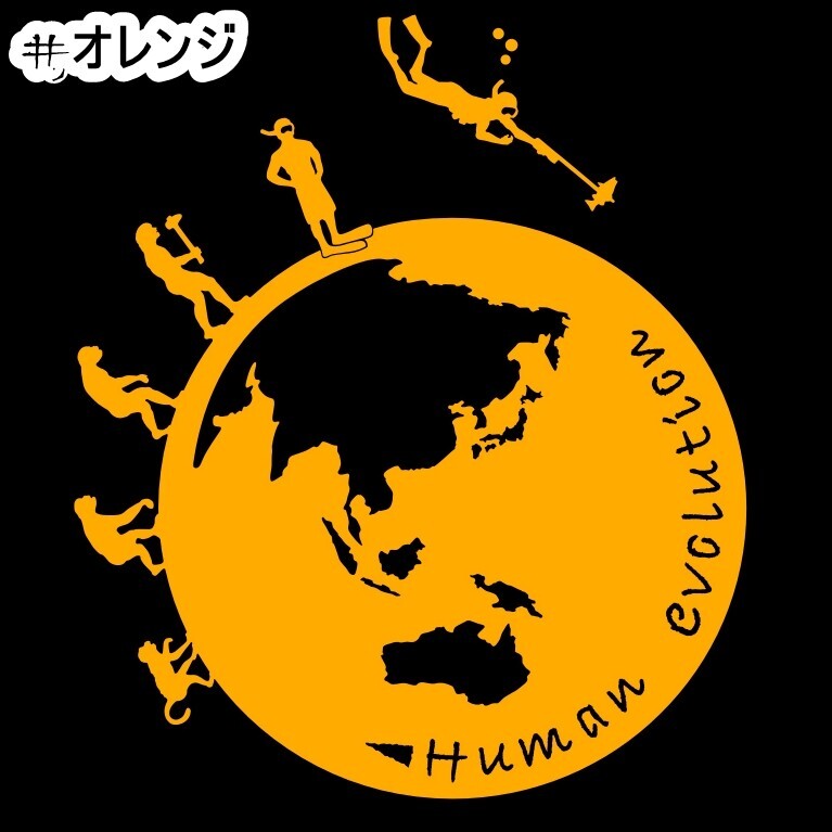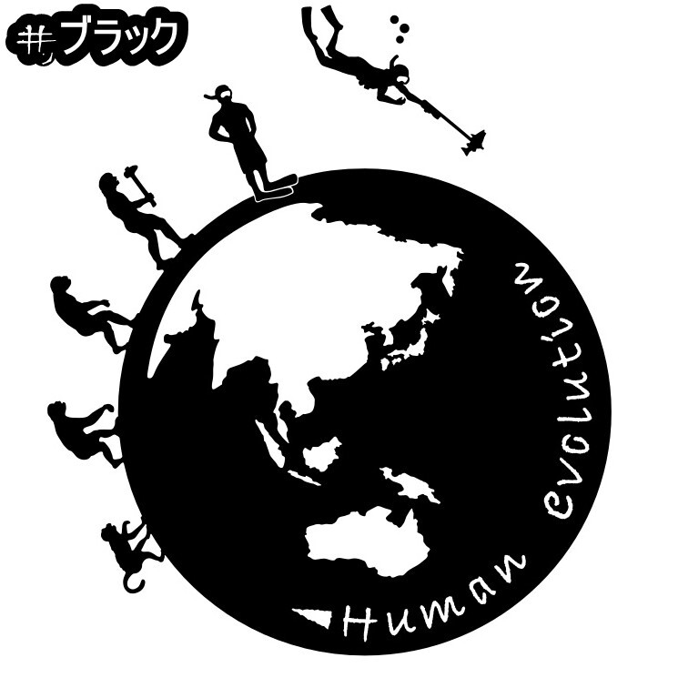 ・商品名 《SD10》21×18.2cm【地球型人類の進化‐シュノーケリング編】潜水、海、スキューバダイビング、スクーバ、ステッカー ・素材 屋外耐候性フィルム、フィルム厚=0.075mm、塩ビ製 ・ステッカータイプ カッティングステッカー(文字や柄が残るタイプ) |