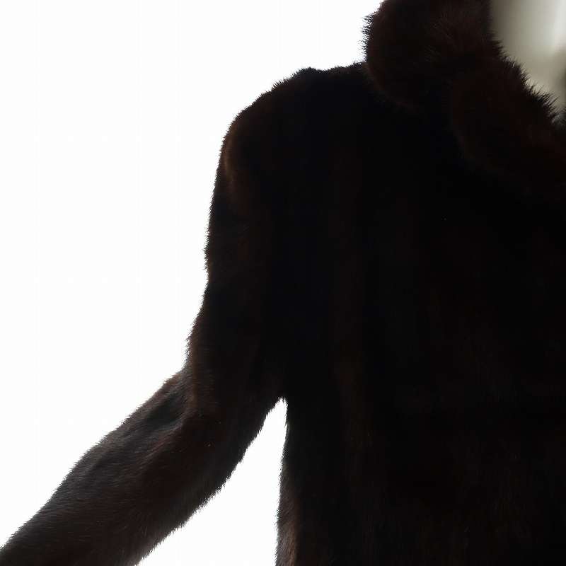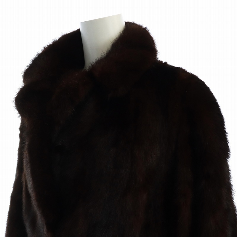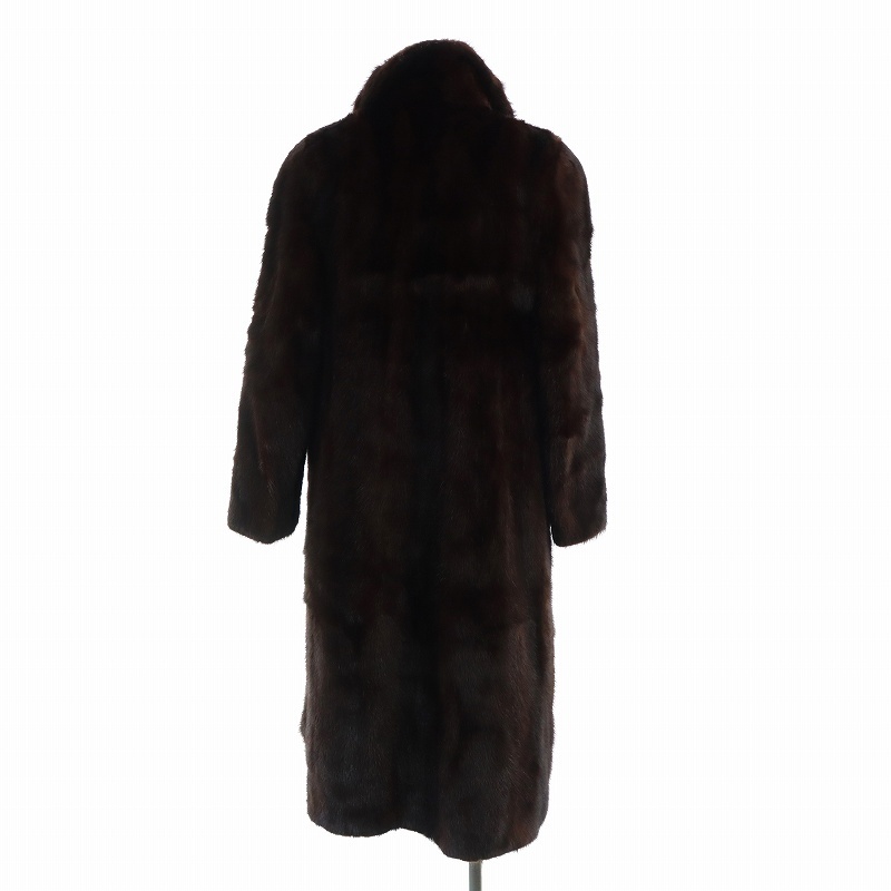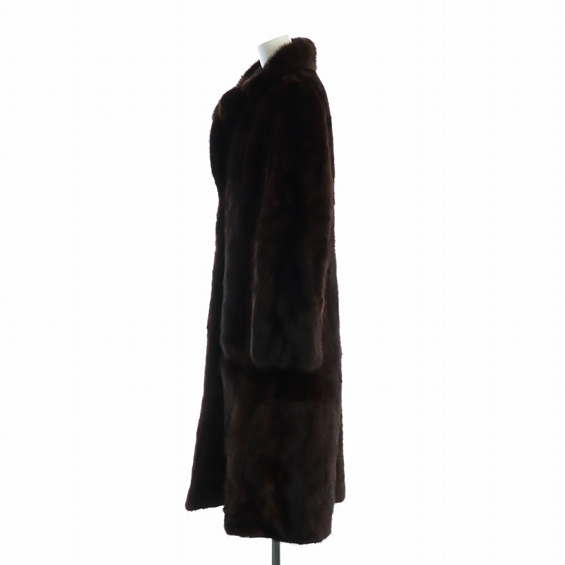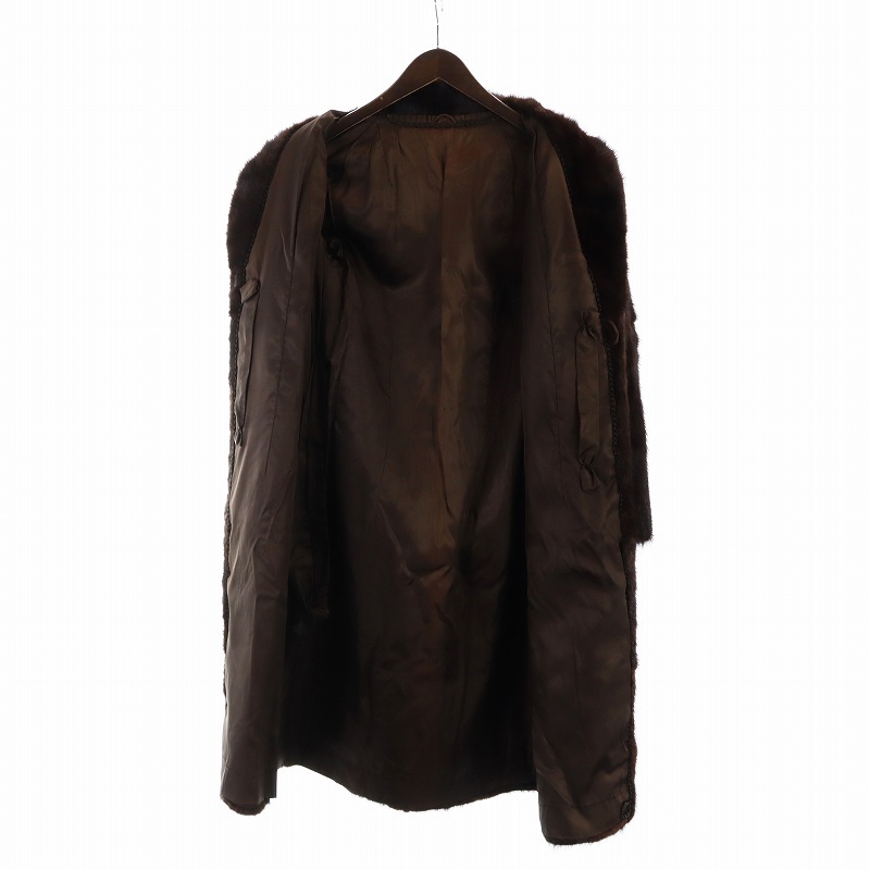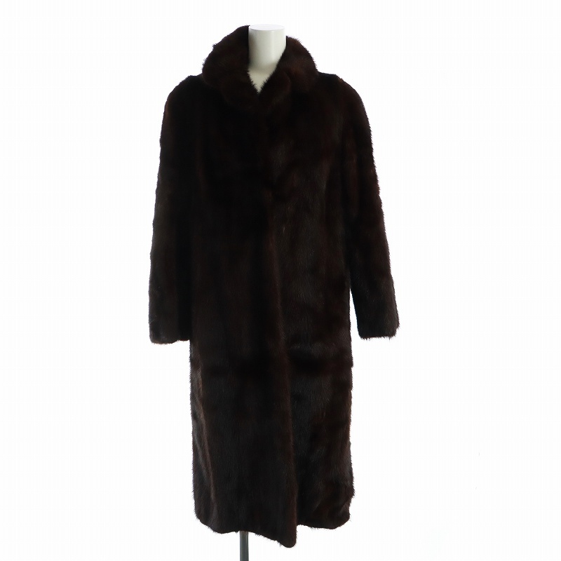 ノーブランド品 毛皮コート ブラウンミンクファー 長袖 総裏地 ロング 11 L 茶 ブラウン ■GY18 /MQ レディース