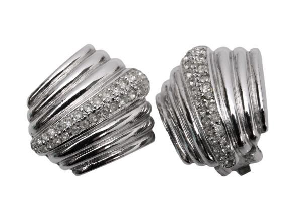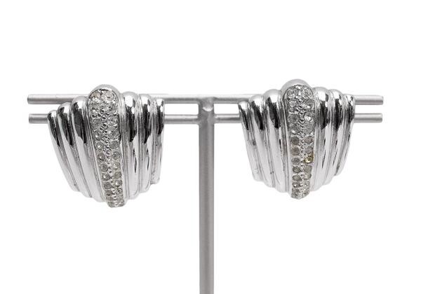 | クリスチャンディオールChristian Dior ラインストーン装飾イヤリング シルバー |