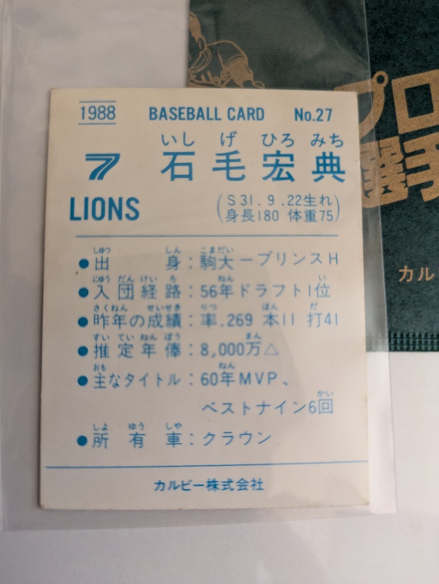 石毛宏典 88 カルビープロ野球チップス No.27 西武ライオンズ