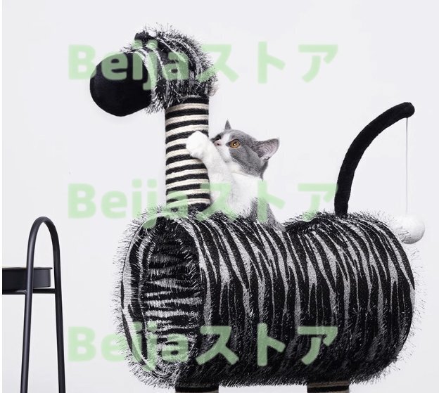 猫用木製 可愛いサイザル キャットタワー キャットツリー キャットランド 据え置き 木登りタワー シマウマ型