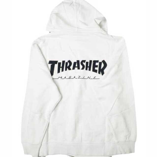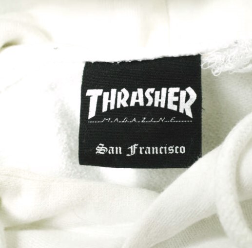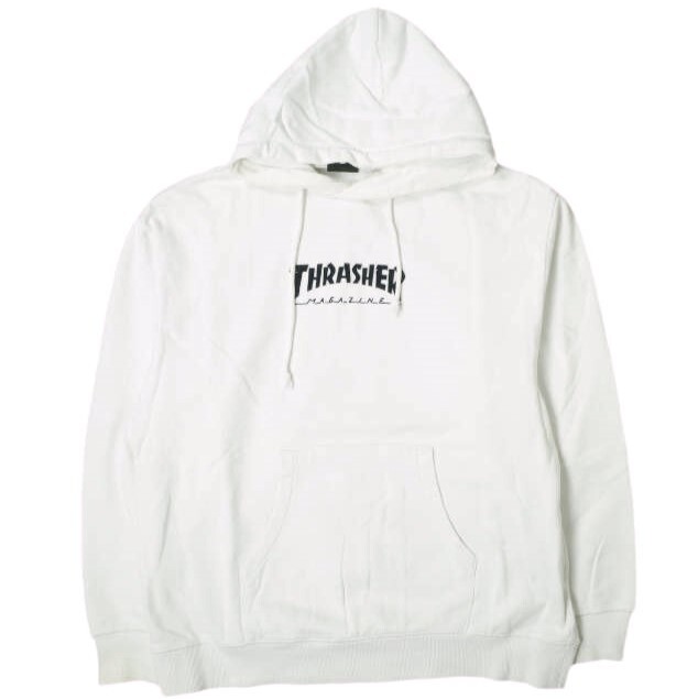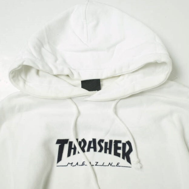 THRASHER x BEAUTY&YOUTH スラッシャー ビューティーアンドユース 別注 フロッキーロゴ スウェットプルオーバーパーカー L ホワイト 裏毛
