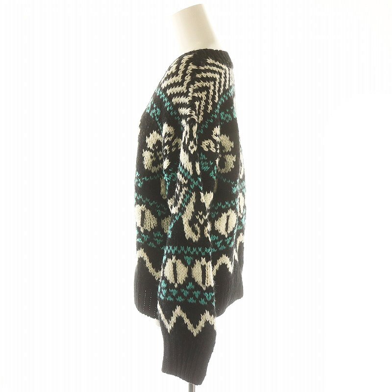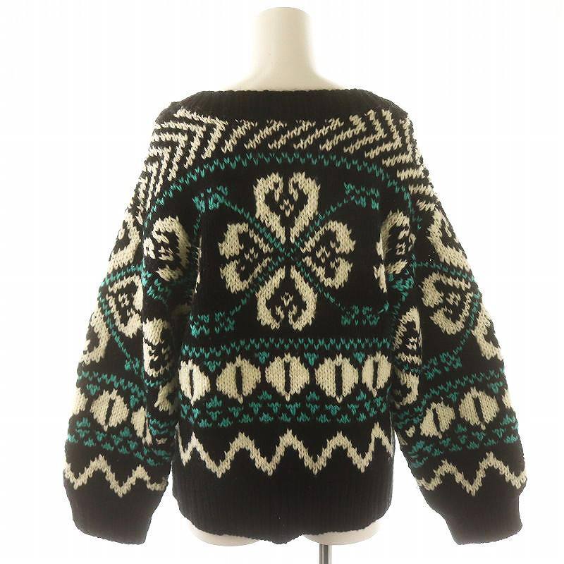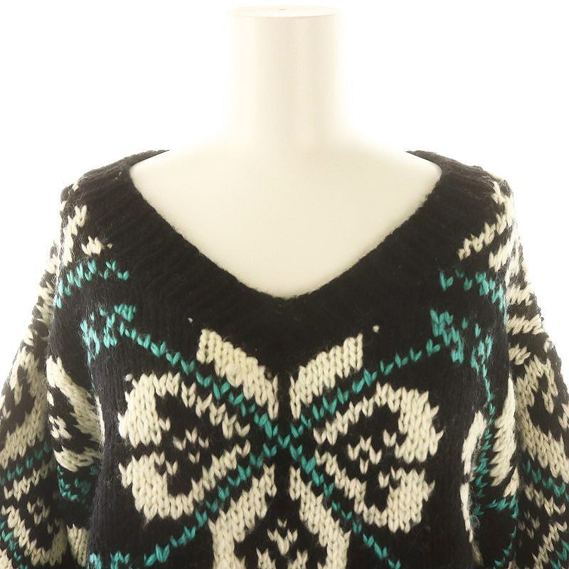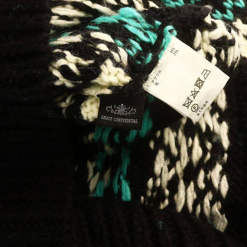 グレースコンチネンタル GRACE CONTINENTAL 23AW ローゲージキカニットトップ セーター 長袖 Vネック 総柄 36 黒 白 ミントグリーン /DO ■OS レディース