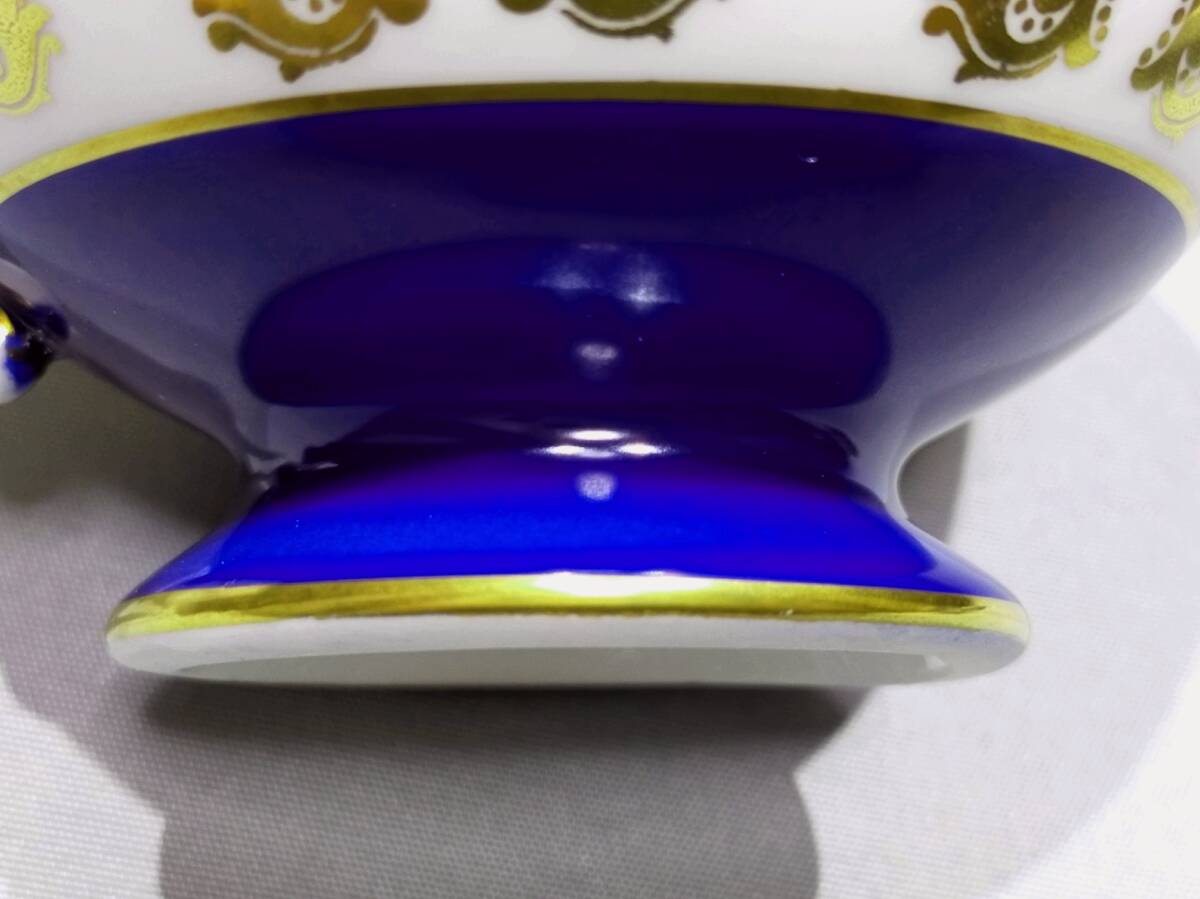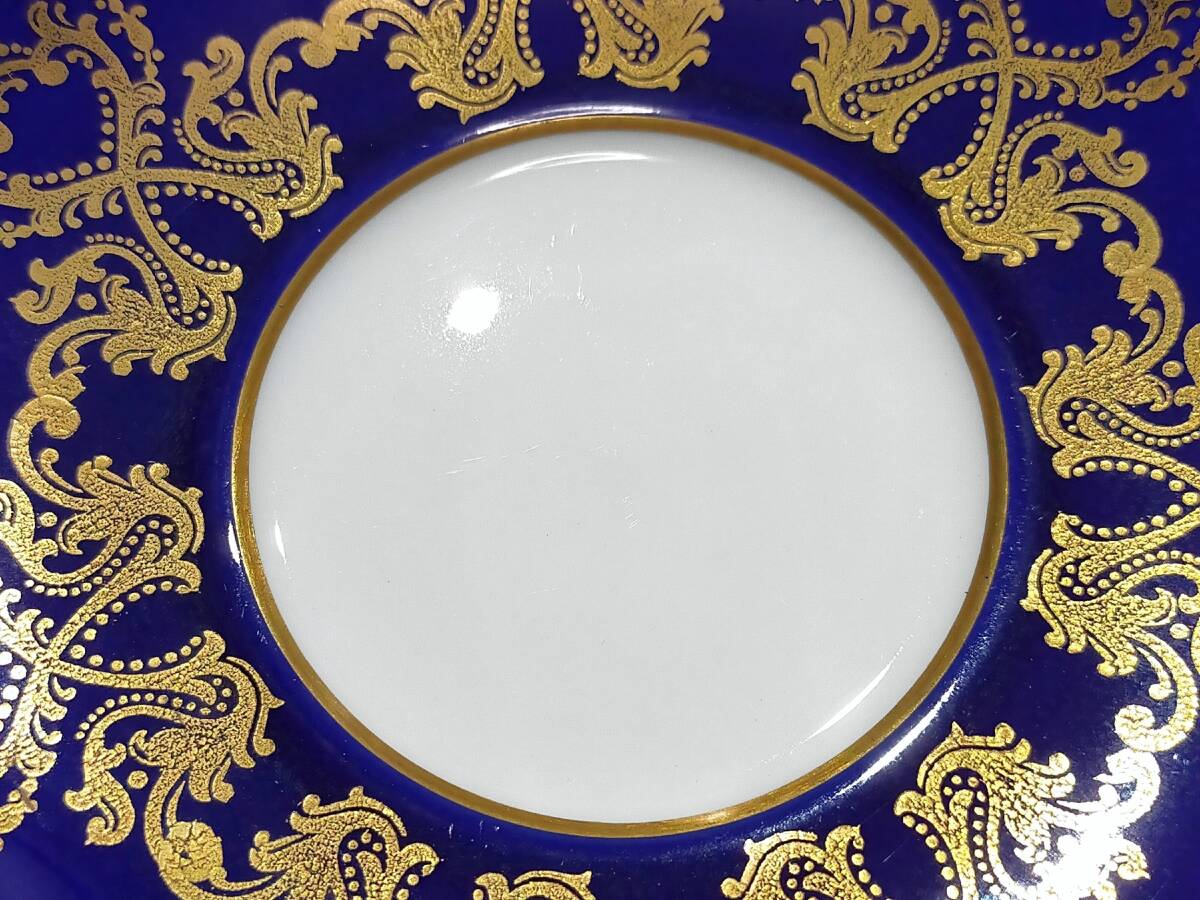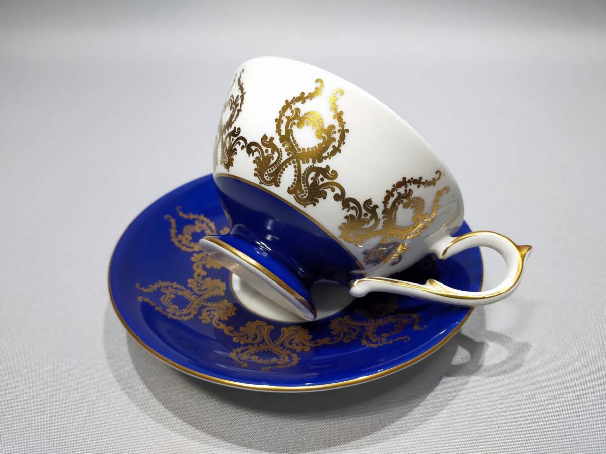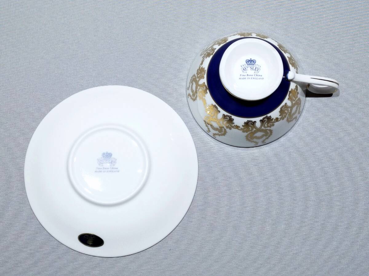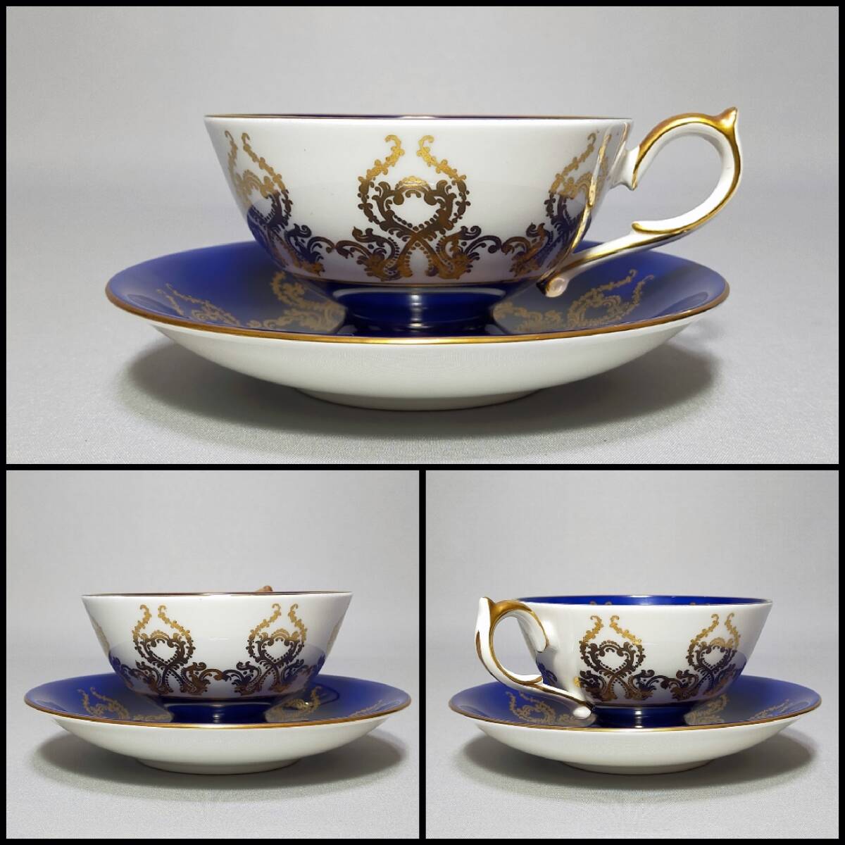 美品 ティー カップ&ソーサー AYNSLEY エインズレイ オーチャードゴールド 金彩 フルーツ コバルトブルー