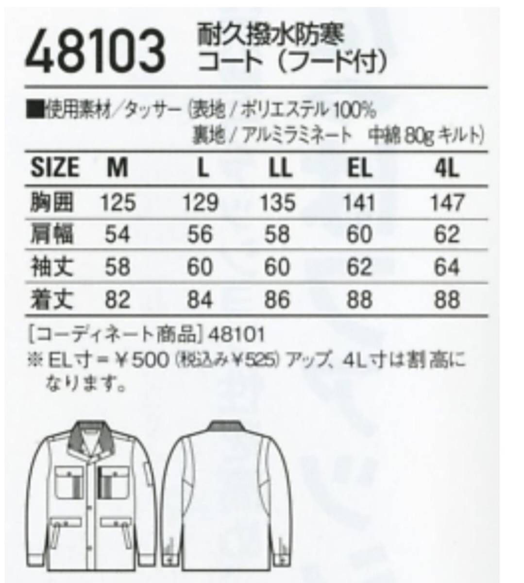 2750 自重堂48103耐久撥水防水防寒コート/グリーンMサイズ 新品 (秋冬作業着ジャンパー作業服ジャンバー裏アルミ軽量保温ウイングアーム