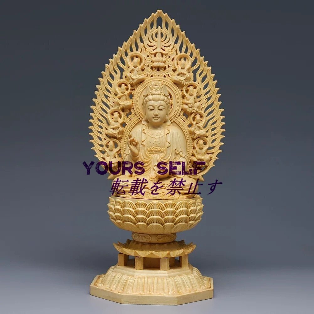 木彫仏像 観世音菩薩 観音菩薩 観音像 置物 座像 仏像彫刻 総檜木材 精密彫刻 仏教工芸品