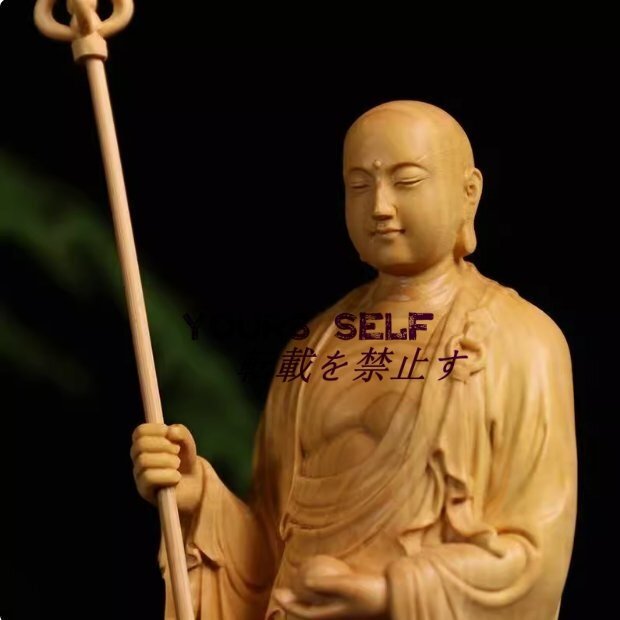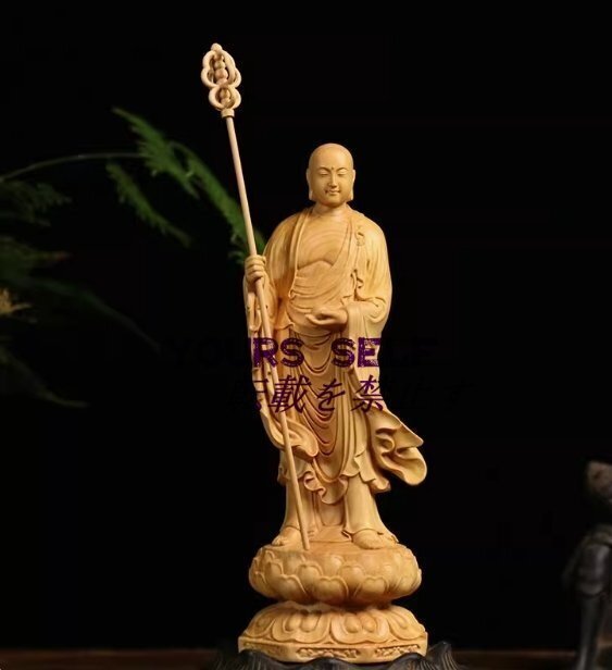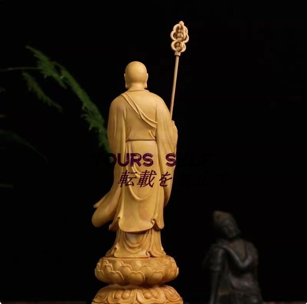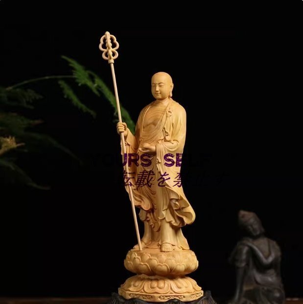 地蔵菩薩 仏像 木彫り 高級天然ツゲ木彫り高さ26cm×巾8cm仏教美術 彫像 美術品 フィギュア贈り物 プレゼント