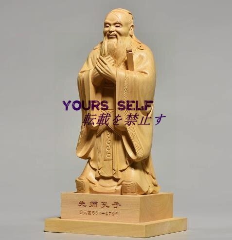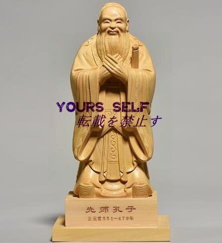 仏像 孔子 立像 木彫仏像 儒教神 総高18cm