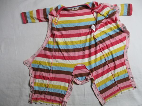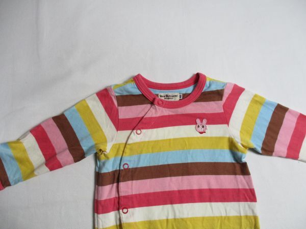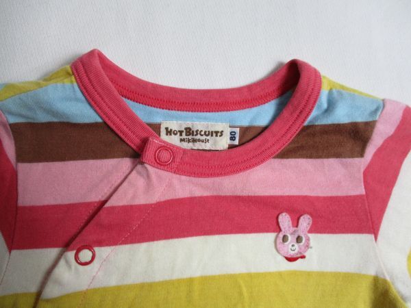 | BG240【HOTBISCUITS・ミキハウス】ロゴ刺繍 ボーダー 長袖 ショートオール 女児 多色 80 | |
