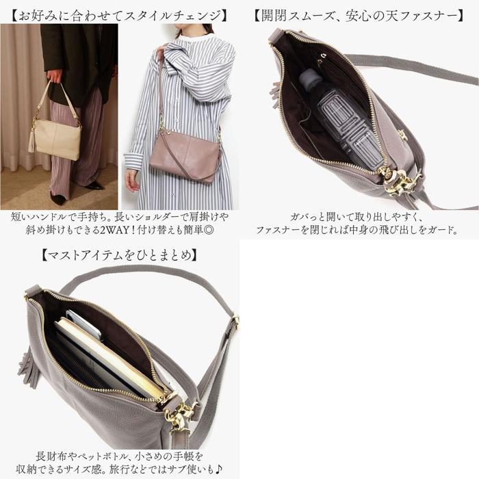 商品説明 | ・・【ミニマルスタイルにおすすめ】 ・おしゃれに持てる相棒♪「COOCO シュリンクレザー2WAYショルダーバッグ」。 ・【落ち着きのある上品な仕上がり】 ・柔らかな牛革の表面を収縮させ、シボ感を出すシュリンク加工を。光沢のある金具と相性抜群。 ・【お好みに合わせてスタイルチェンジ】 ・短いハンドルで手持ち。長いショルダーで肩掛けや斜め掛けもできる2WAY!付け替えも簡単◎ ・【開閉スムーズ、安心の天ファスナー】 ・ガバっと開いて取り出しやすく、ファスナーを閉じれば中身の飛び出しをガード。 ・【マストアイテムをひとまとめ】 ・長財布やペットボトル、小さめの手帳を収納できるサイズ感。旅行などではサブ使いも♪ ・【サクッと取り出せて迷子知らず】 ・合計6個のポケットを配置。細々とした物も、バッグの中で探す手間が不要。 ・【使う人を選ばないシンプルデザイン】 ・年代問わず持ちやすく、どんなコーデにも素敵にマッチ。取り外せるフリンジチャーム付き♪ ・【ポケット仕様】 ・内側:ファスナーポケット×2、オープンポケット×3 ・背面:ファスナーポケット×1 |