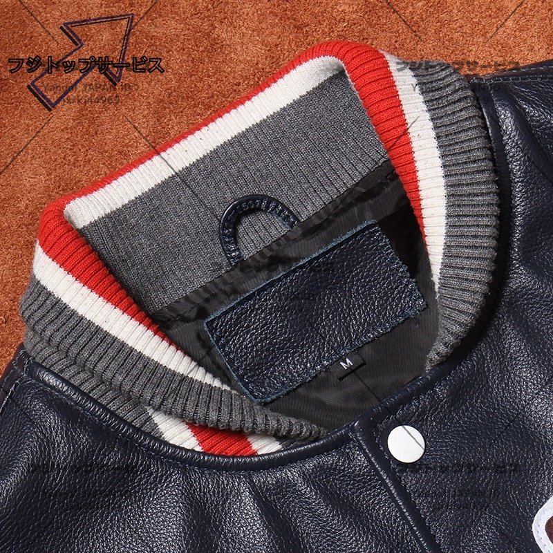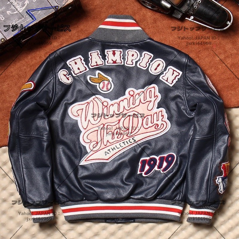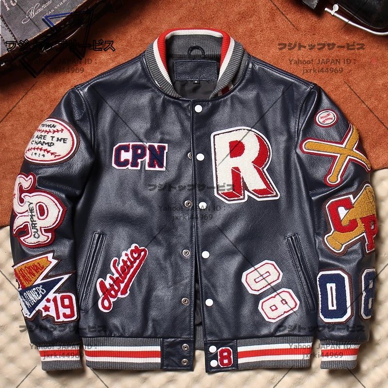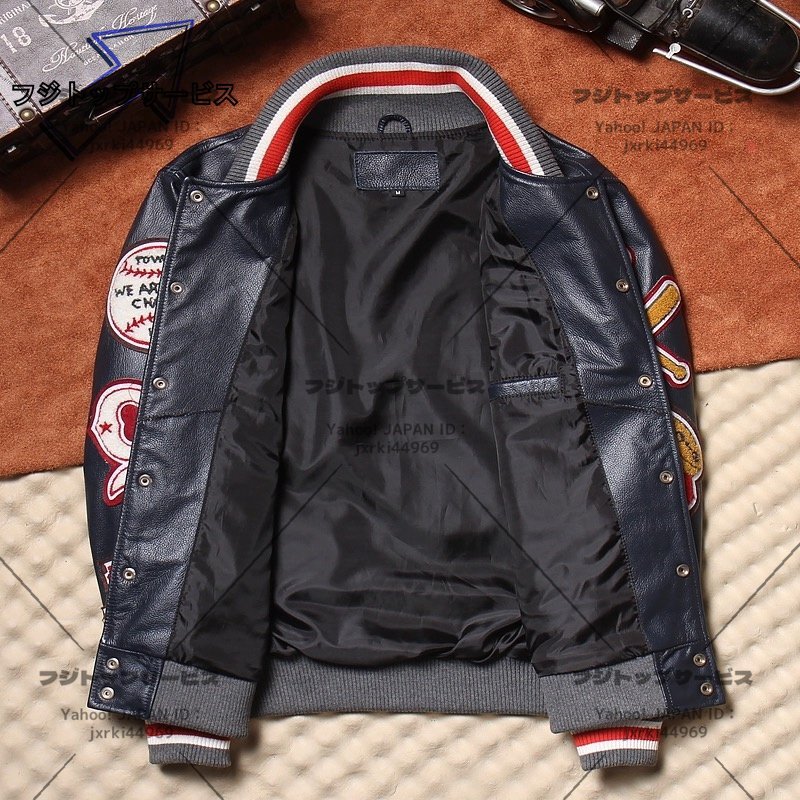 ◆美品◆メンズ 革ジャン レザージャケット 最上級 牛革 スタジャン ライダース 本革 刺繍 スタジアムジャンパー L~6XL