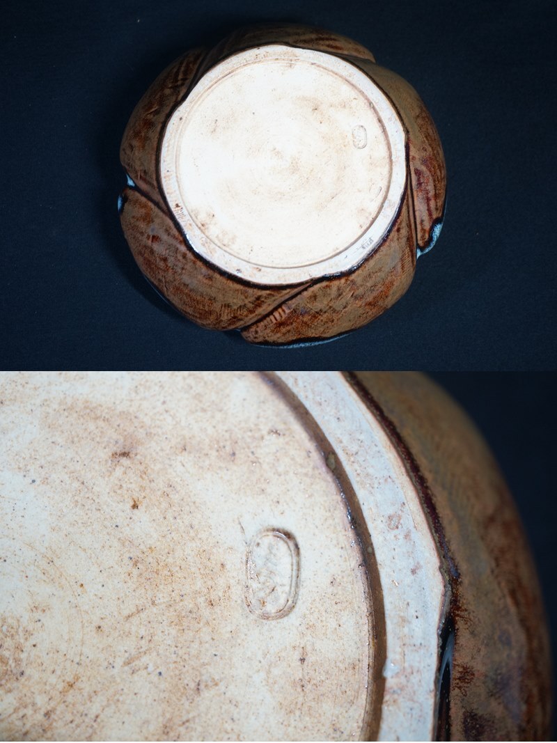■東ハ:【膳所焼】淡海ぜぜ 窯元 陽炎園造 捻梅 水指 共箱付 遠州七窯 茶器 茶陶 茶道具 煎茶道具 ★送料無料★■ 膳所焼 淡海ぜぜ 窯元 陽炎園造 「 捻梅 水指 」共箱付きになります。 【膳所焼】 武人であり茶人でもある小堀遠州の教えを受けた膳所藩主菅沼定芳(1621~1634年在任)が、 現在の相模川河口に窯を開いたのが始まりと言われています。 菅沼定芳転封後の藩主石川忠総の時代にかけて、 小堀遠州の支援を受けた膳所焼は将軍徳川家光への献茶に用いられるなど、 茶器として天下にその名が知られることになりましたが、 やがて藩が庇護していた膳所焼は18世紀前半になると衰退していきます。 ここからは庶民によって新しい膳所焼として受け継がれ、 天明年間(1781~1789年)若宮八幡神社近くの小田原屋伊兵衛が起こした窯で、 唐三彩風の緑や黄色の鮮やかな色彩が特徴の梅林焼は何代かに渡り幕末まで受け継がれました。 また、文政年間(1818~1830年)に篠津神社前の井上幾右衛門が、 開窯した雀が谷焼は茶臼山の東南雀ケ谷の良質の陶土を用い、主に土瓶などの生活用品を焼いていました。 今日広く世間に知られている膳所焼は、 大正八年(1919)岩崎健三が全財産を投げ打ち、日本画家山元春挙や京焼の名工二代伊東陶山の協力を得ながら 復興したもので、その子岩崎新定によって、継承され発展してきました。 【サイズ】 水指 (約) 高さ10.5 × 幅23.3 ×奥行23.0 cm 【コンディション】 中古のお品となります。 付属品は写真にあるものが全てです。 使用に伴う水指蓋にヨゴレ・キズが複数、共箱にシミヨゴレ・ヘコミキズ、蓋裏に記入がございます。 当店では、古いものを扱っておりますため、時代経過による汚れ・スレなどがございます。 新品(完全品)をお求めの方は、ご入札をお控えください。 状態につきまして、不明な点などございましたら商品説明欄の質問欄より事前にお気軽にご質問ください。 画像をよくご覧になられお客様のご納得の上、責任を負える範囲でのご入札をお願い致します。 ■商品画像について■ ご使用モニター環境などによっては、多少色合いなどが異なって見える場合がございます。 予めご了承いただけますようお願い申し上げます。 商品画像をよくご確認の上、ご参加ください。 [管理No.25011050XG] |