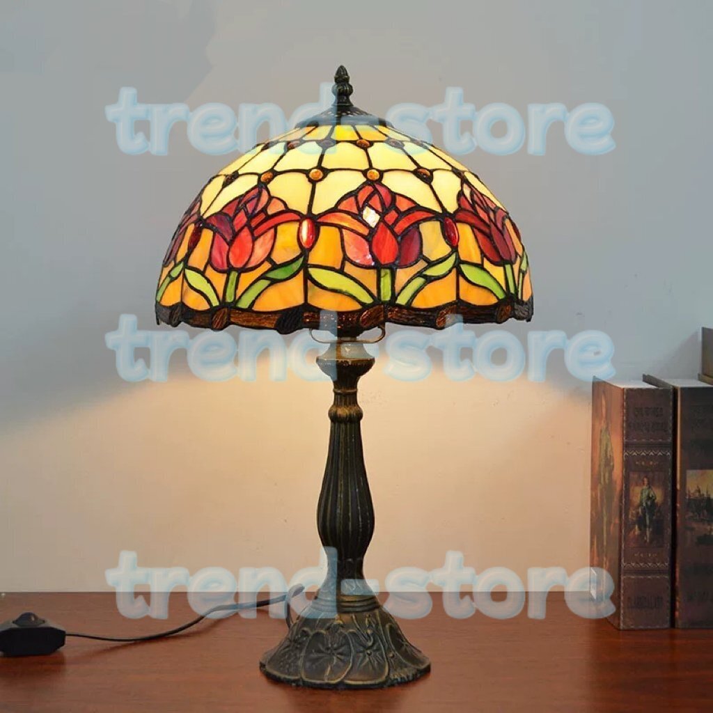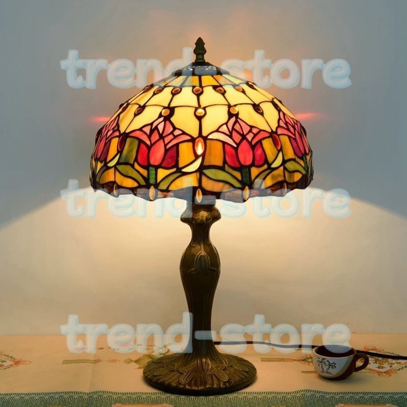 稀少美品◆芸術品◆ステンドランプ ステンドグラス アンティーク 花柄 レトロな雰囲気がおしゃれ ティファニー デスクライト 照明