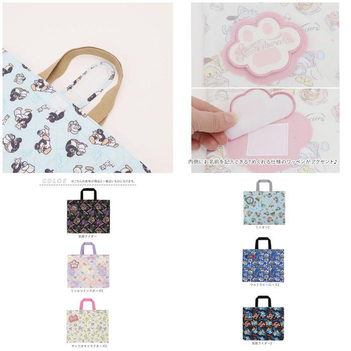 商品説明 | ・・習い事や通学のサブバッグとして活躍!キルトレッスンバッグが登場。(対象年齢3歳以上) ・内側にお名前を記入できる!めくれる仕様のワッペンがアクセント♪ ・バッグには全面プリント柄のキルト生地を使用。ふんわり柔らかく、とっても軽量◎ ・内側はB4サイズ対応で、大きめの楽譜などもすっぽり♪小物収納に便利な吊りポケットとネームタグ付き。(※マチがないため、厚みのある楽譜などは収納できません。) ・長さの異なる2種類の持ち手を装備。短い持ち手(内側)を使って机の横に掛ければ、床につきにくいのも嬉しいポイント。 ・汚れが気になったら手洗いOK。 ・お子さまに人気のキャラクターデザインや乗り物デザインをラインナップ★ ・入園・入学準備にもおすすめ。 |