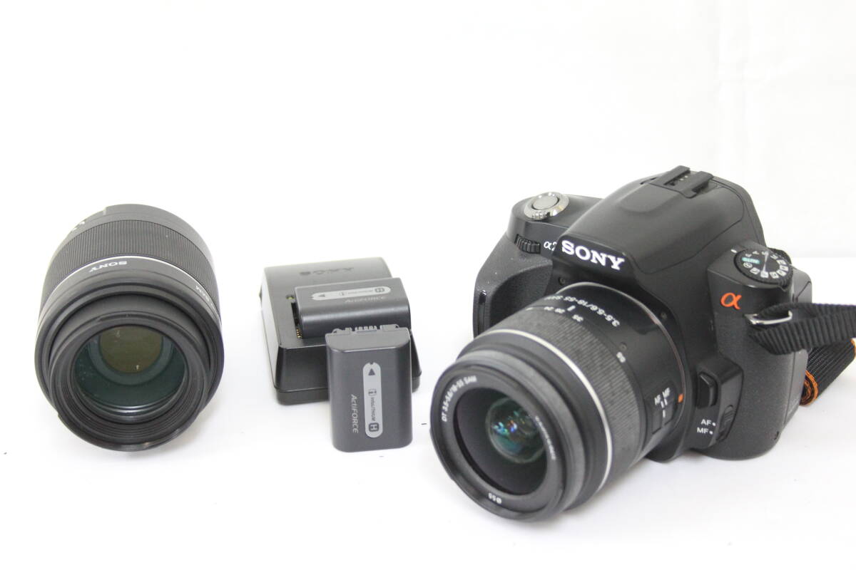 【訳あり品】 ソニー Sony α230 DT 18-55mm F3.5-5.6 SAM DT 55-200mm F4-5.6 SAM バッテリー チャージャー付き デジタル一眼 M2133